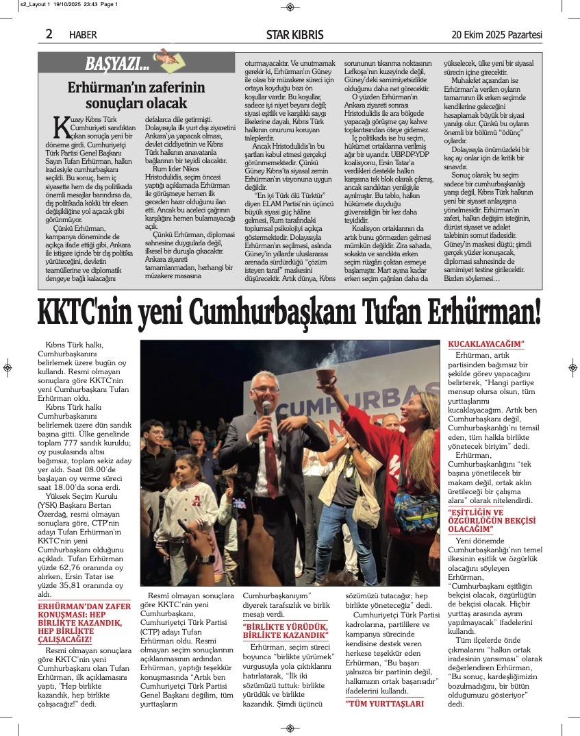 0 Ekim 2025 Pazartesi KKTC Gazete Manşetleri