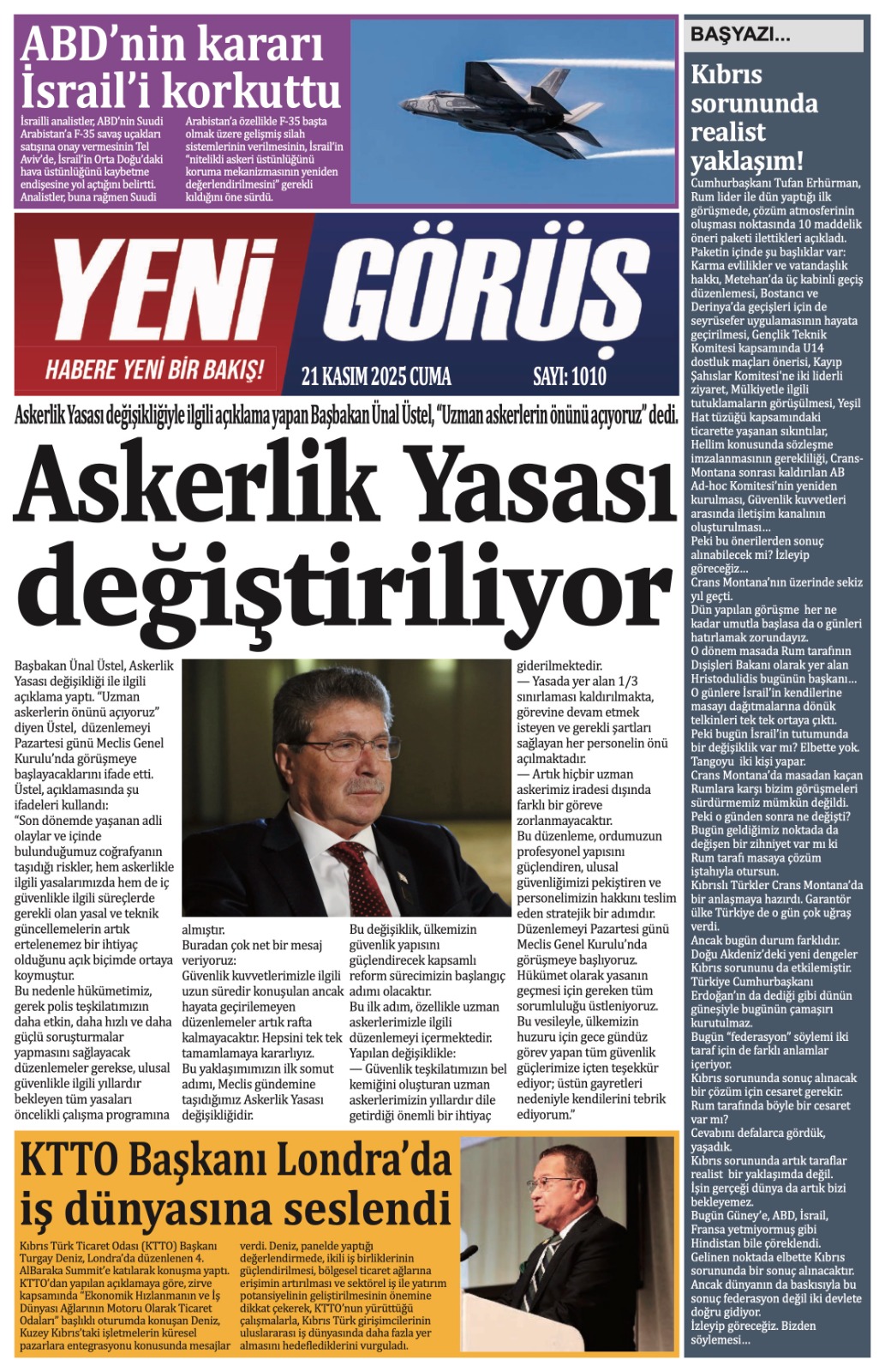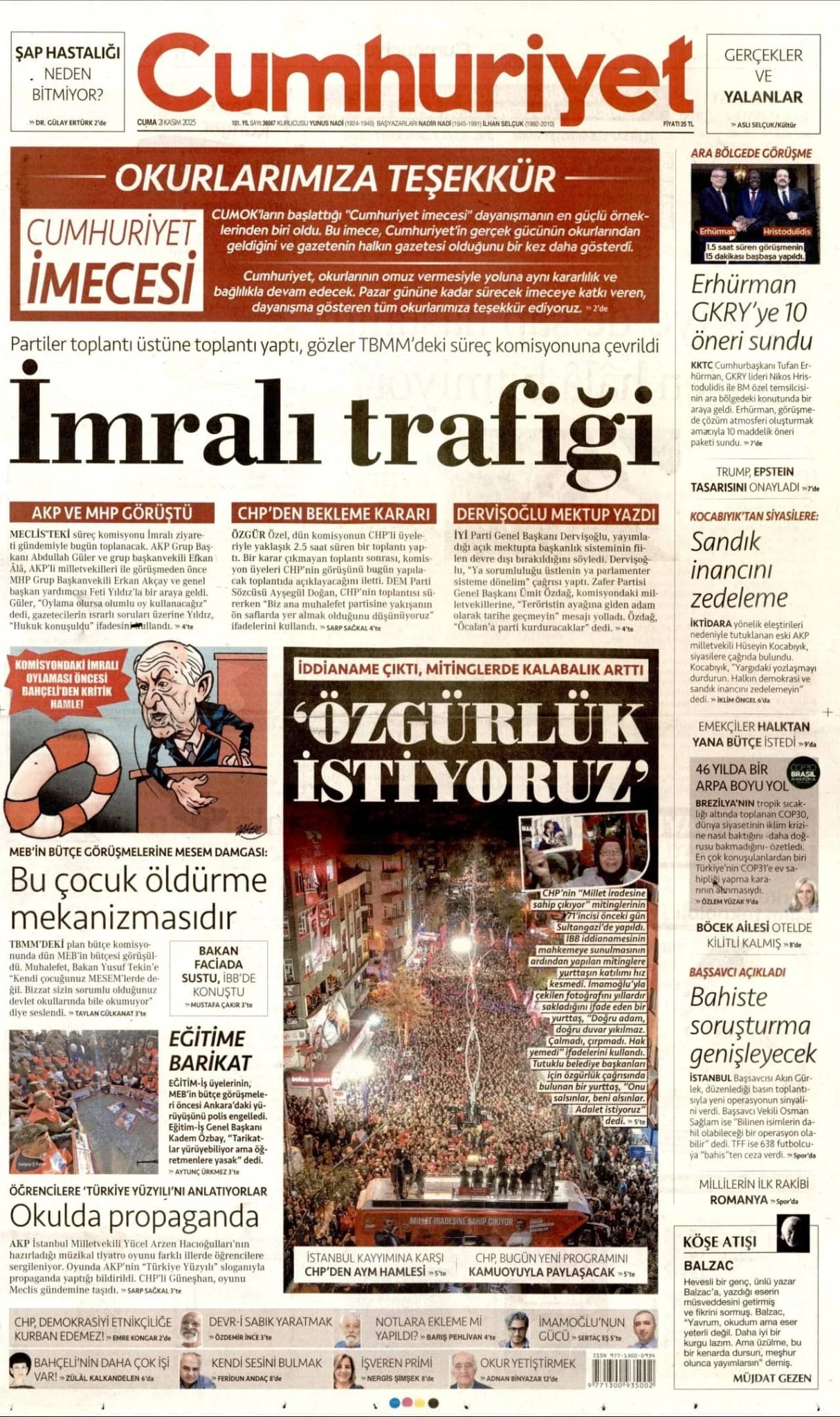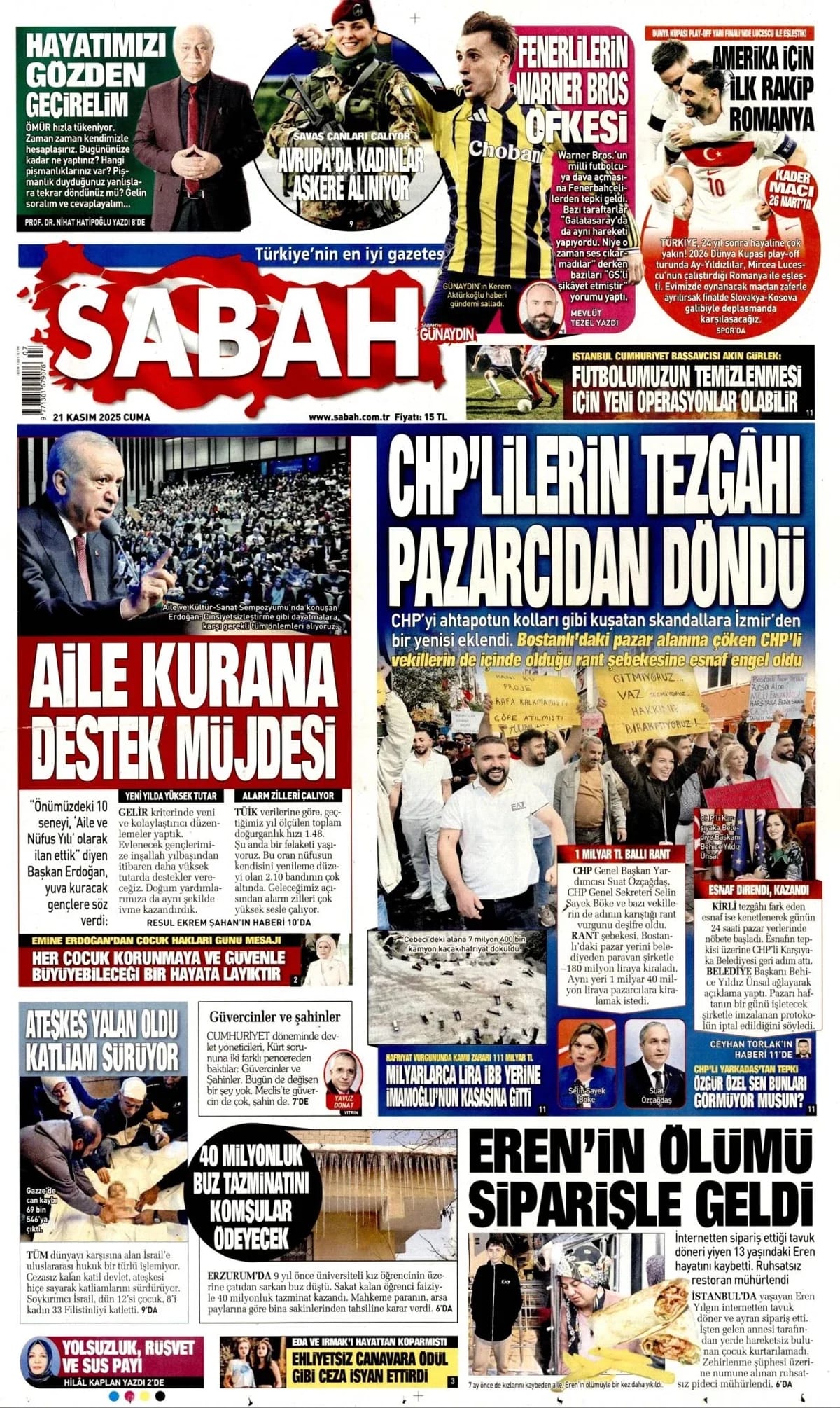GAZETE MANŞETLERİ (21 KASIM 2025)