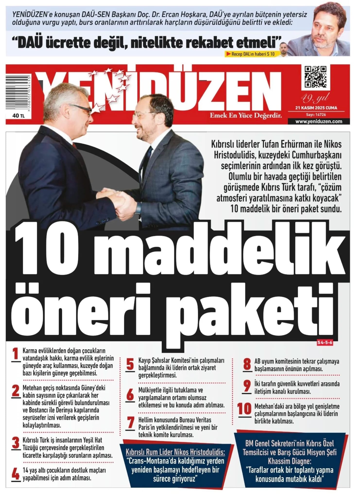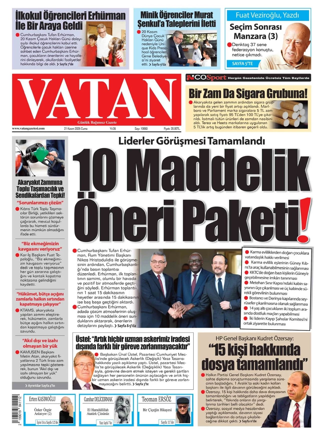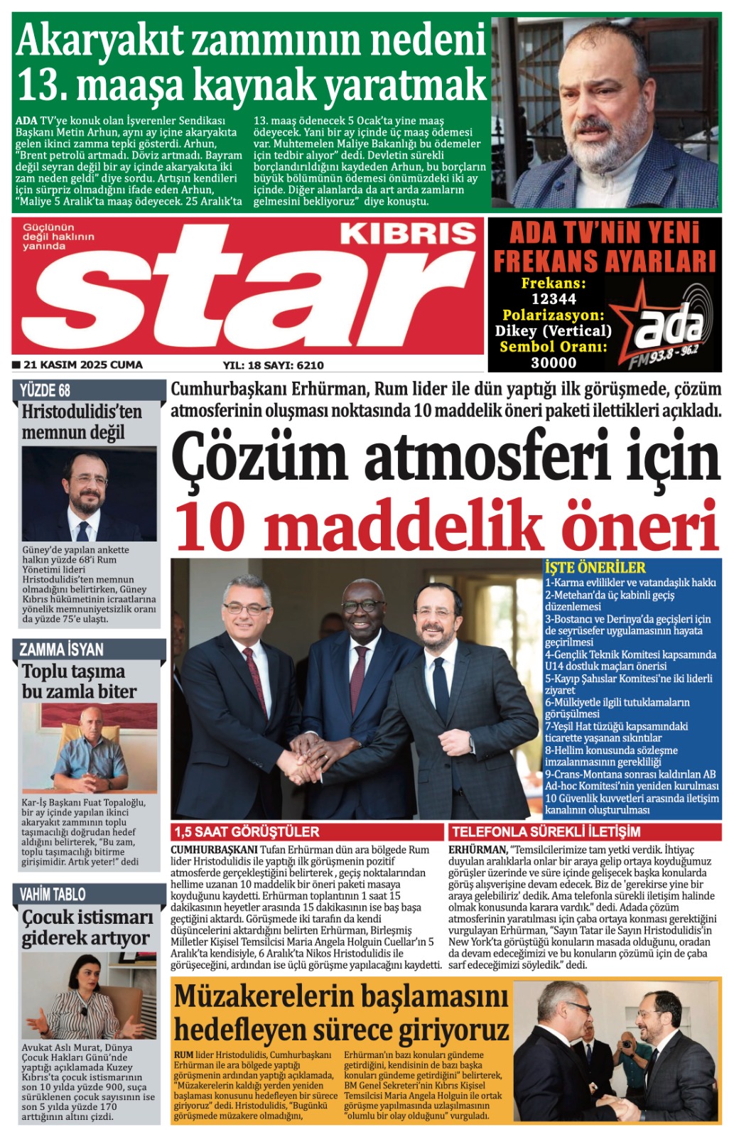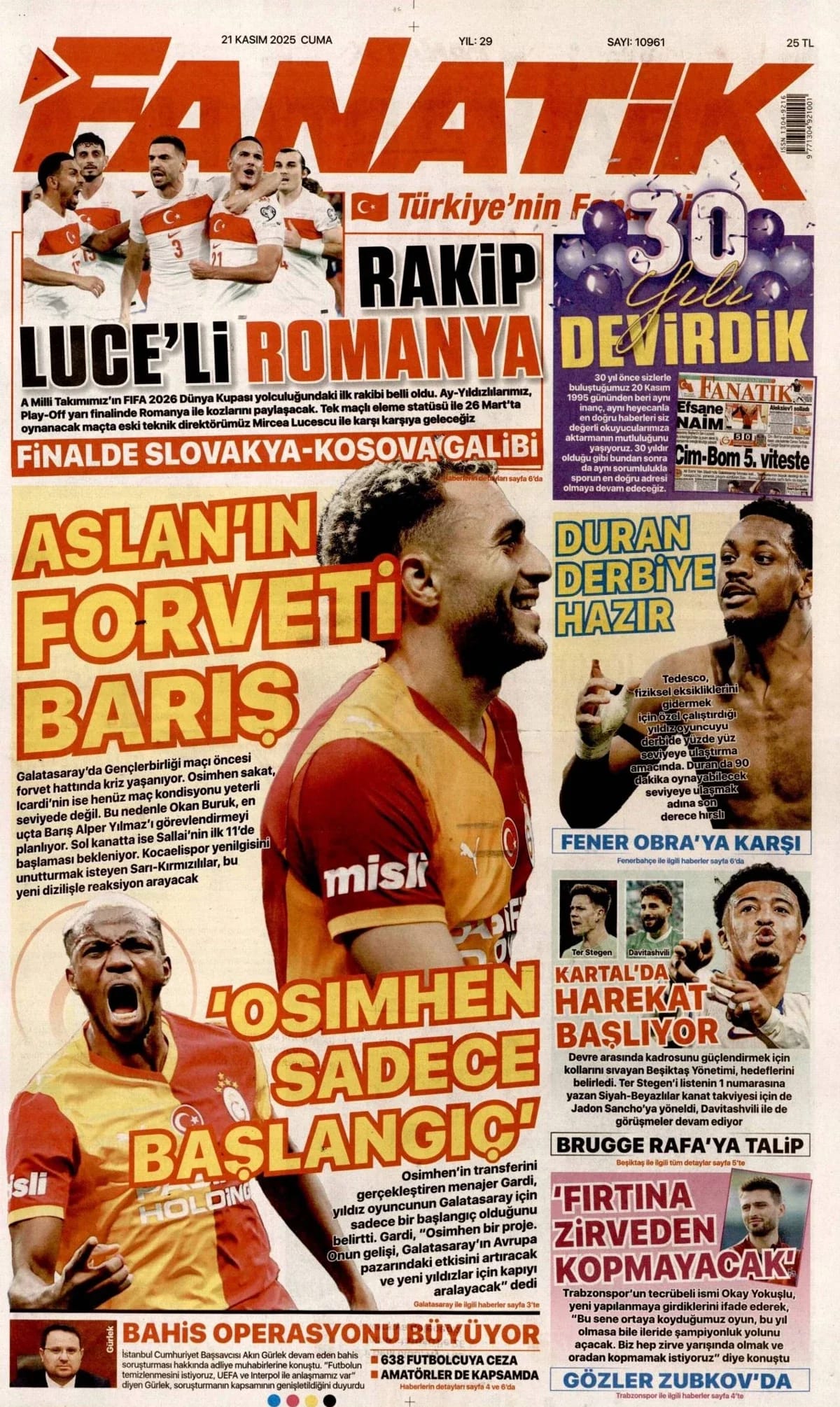 GAZETE MANŞETLERİ (21 KASIM 2025)