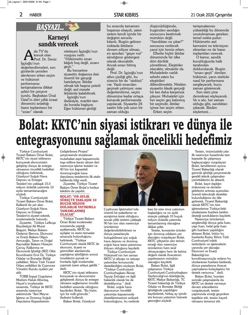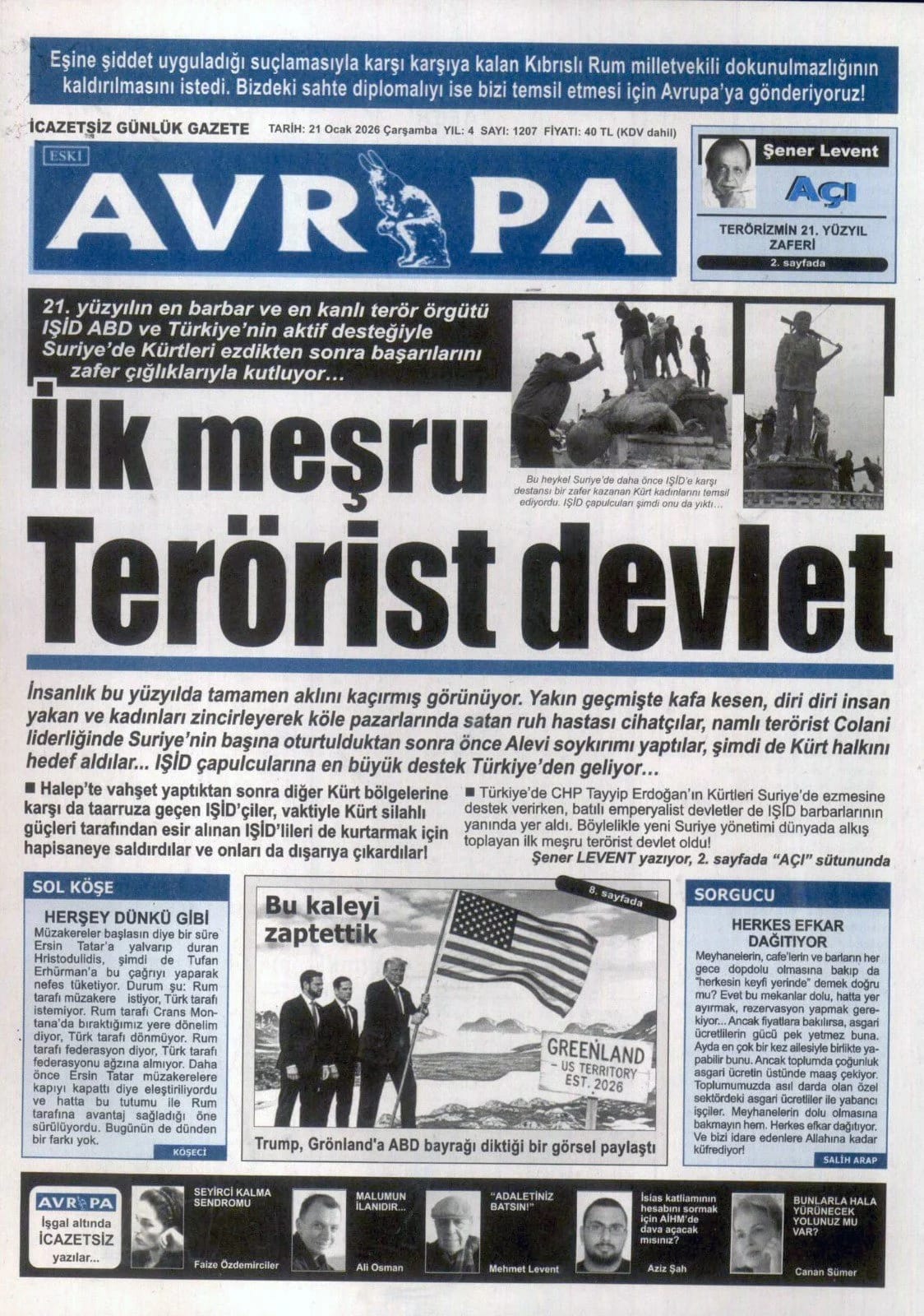 GAZETE MANŞETLERİ (21 OCAK 2026)