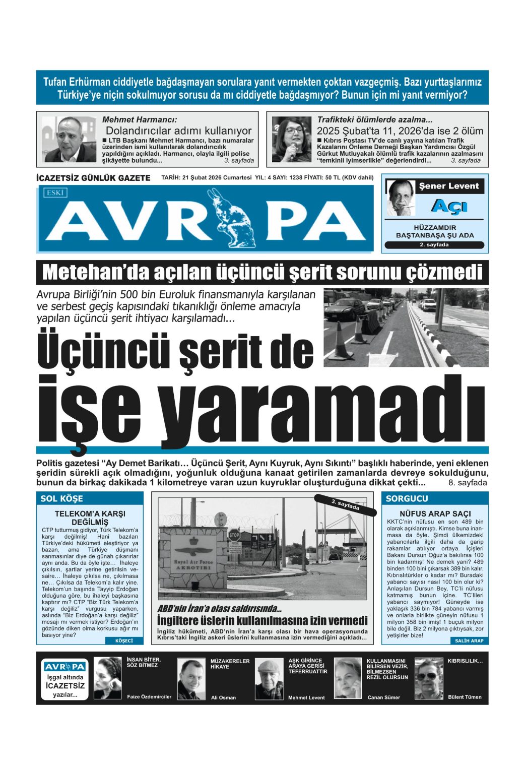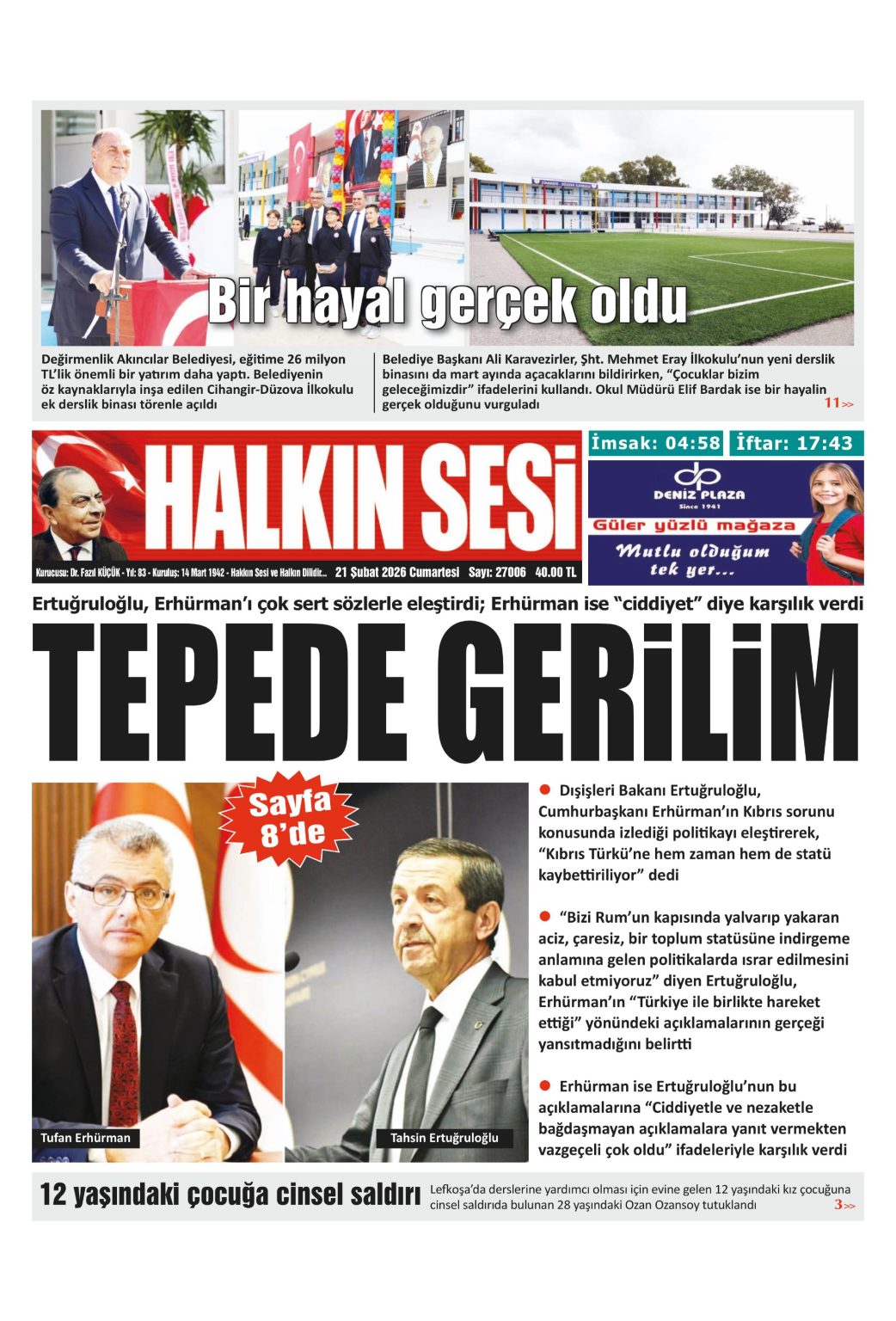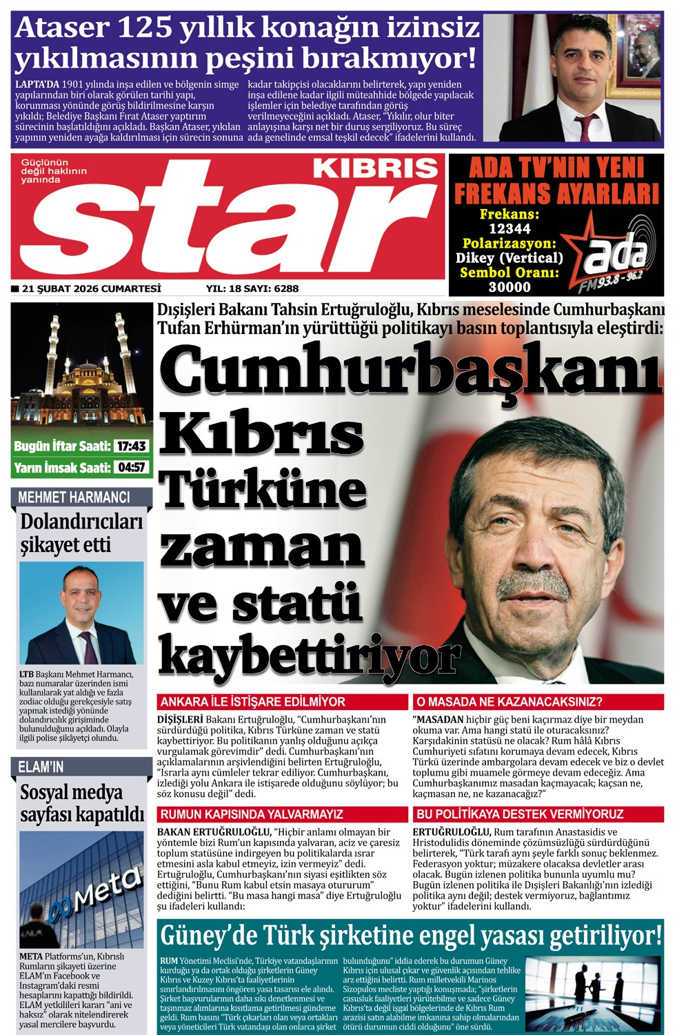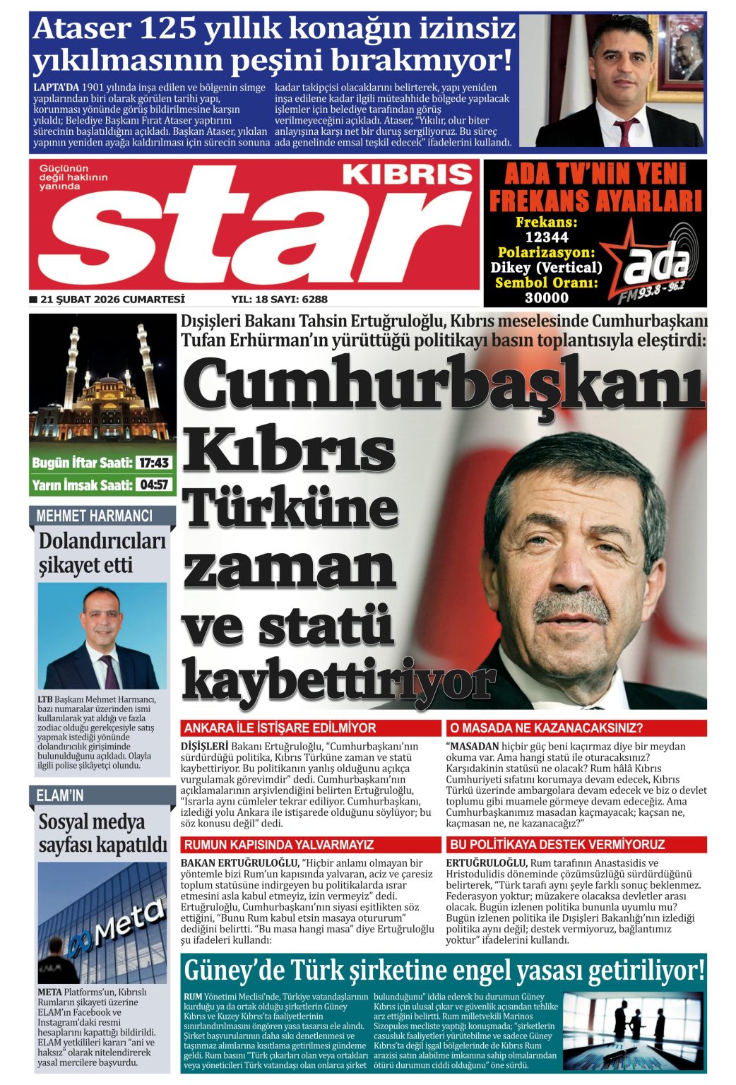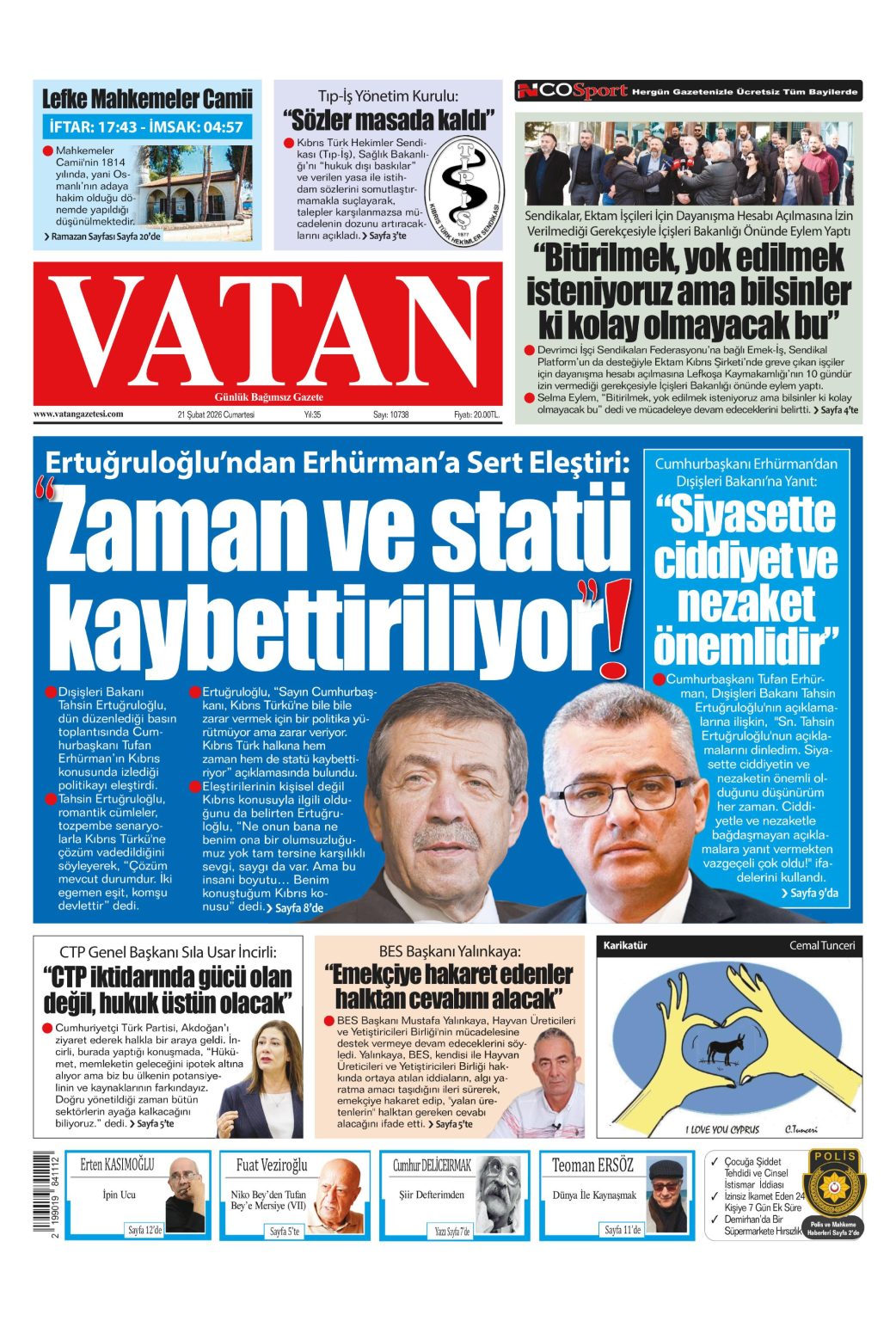 GAZETE MANŞETLERİ (21 ŞUBAT 2026)
