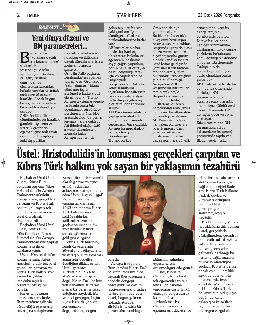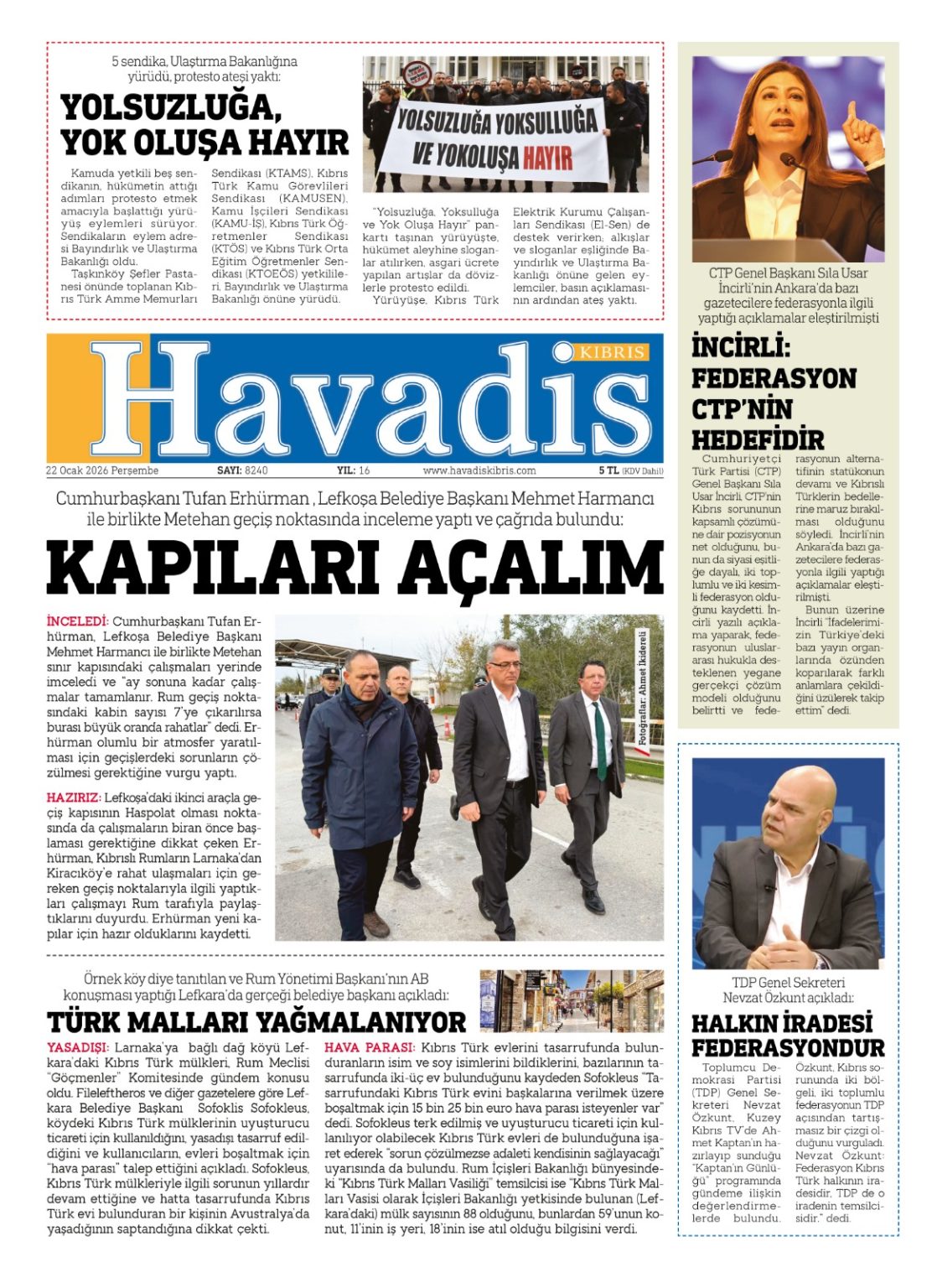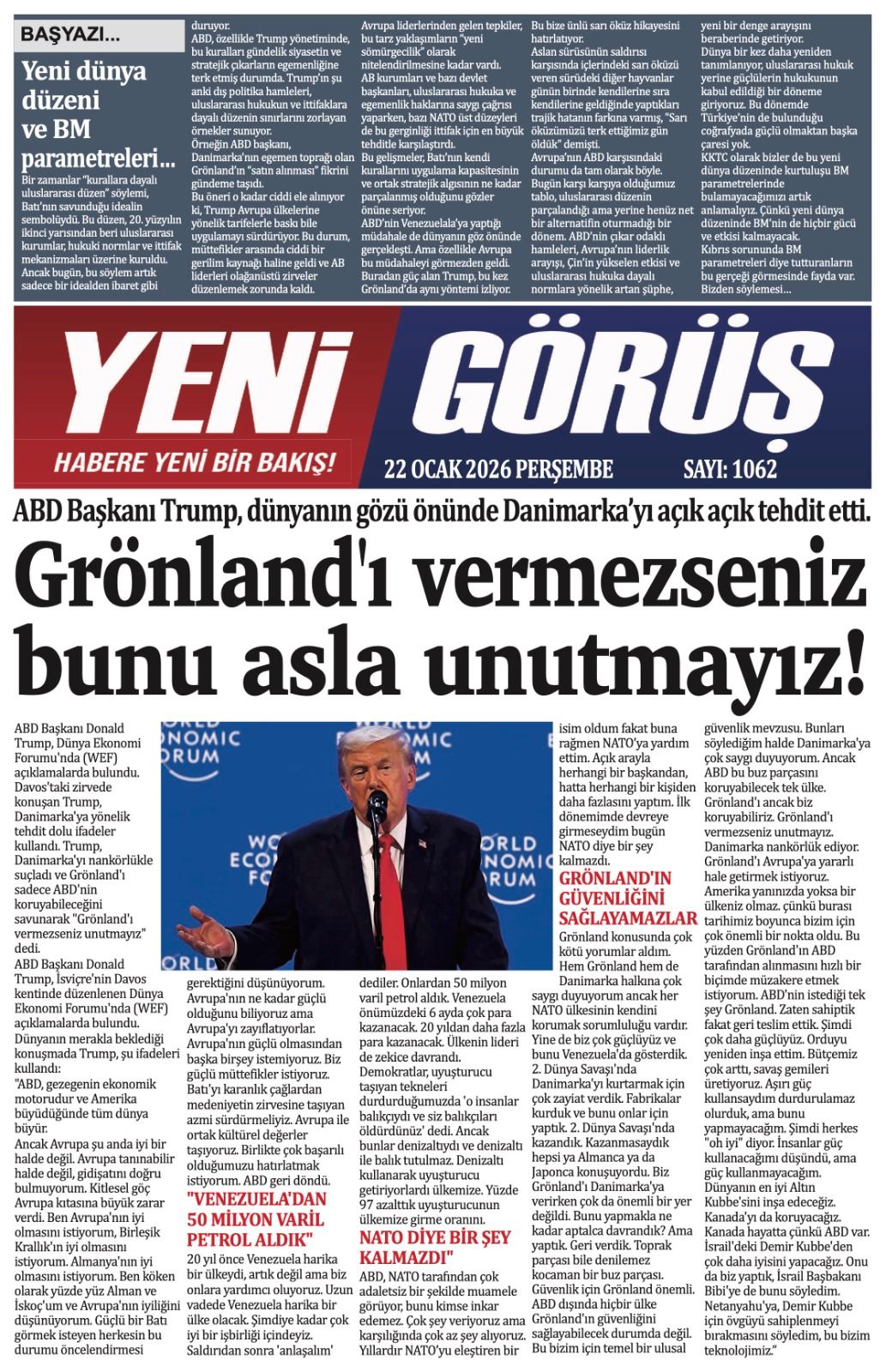 GAZETE MANŞETLERİ (22 OCAK 2026)