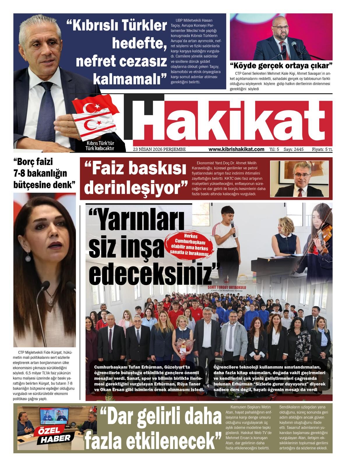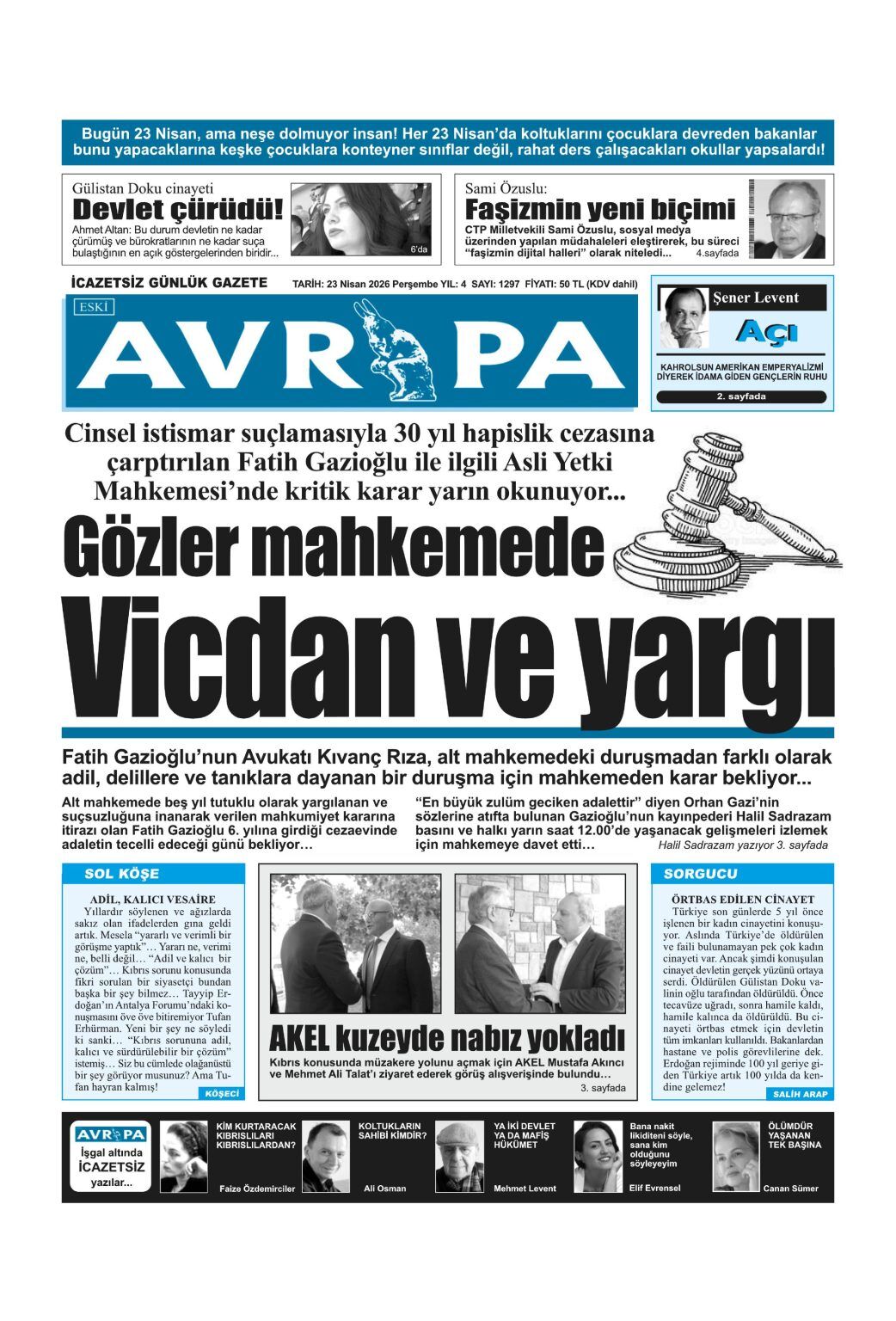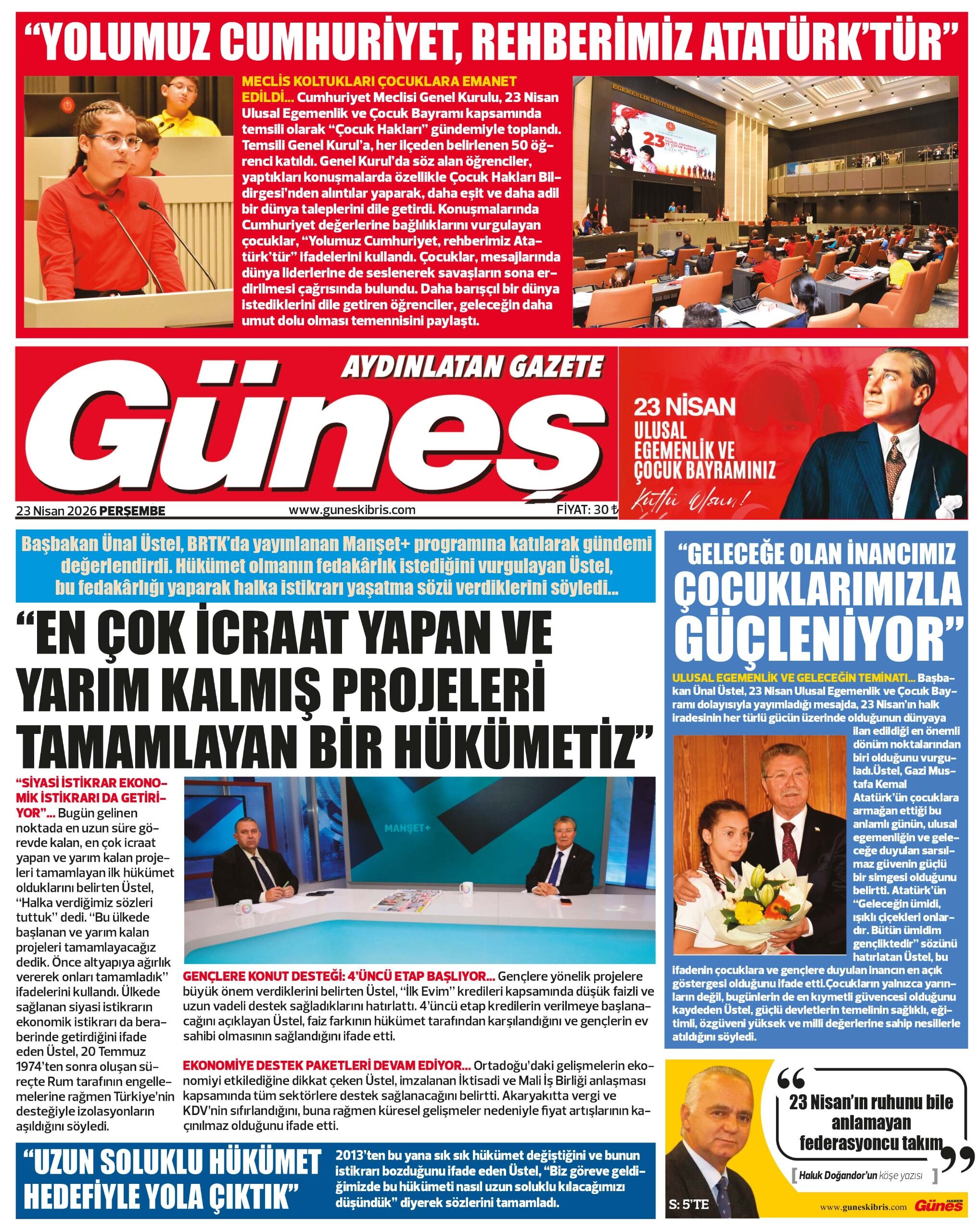 GAZETE MANŞETLERİ (23 NİSAN 2026)