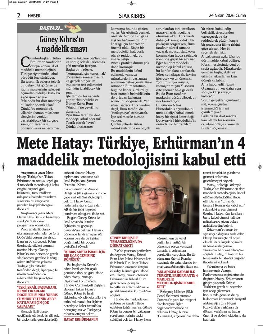GAZETE MANŞETLERİ (25 NİSAN 2026)