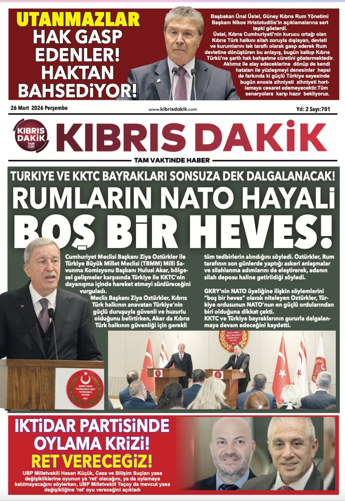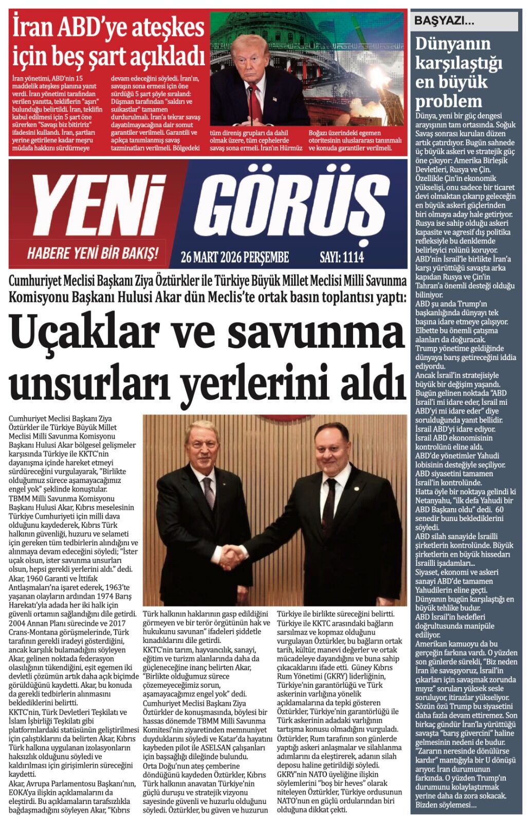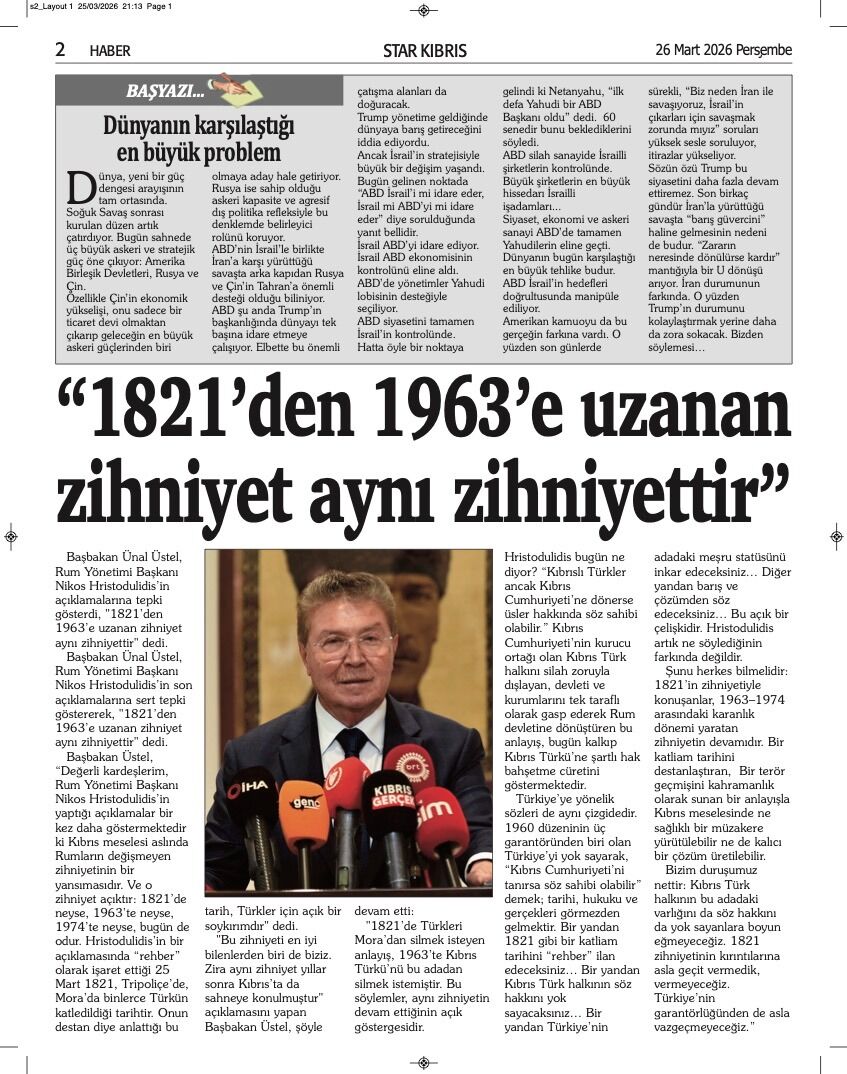 GAZETE MANŞETLERİ (26 MART 2026)