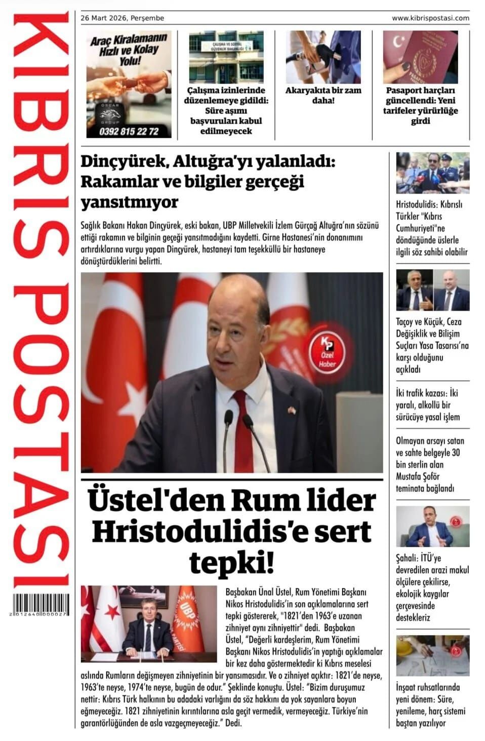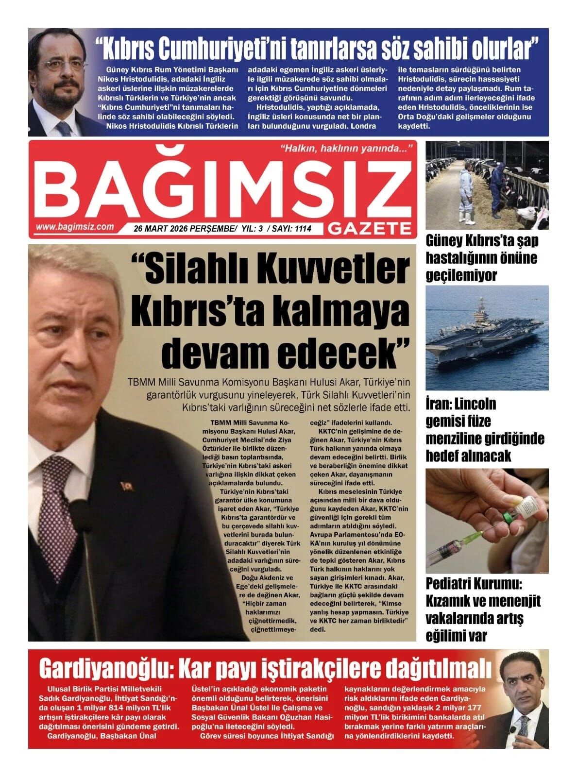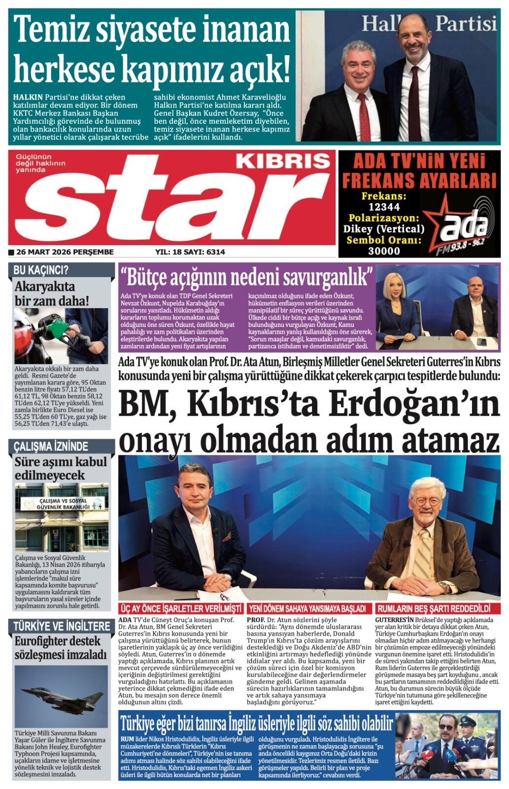 GAZETE MANŞETLERİ (26 MART 2026)