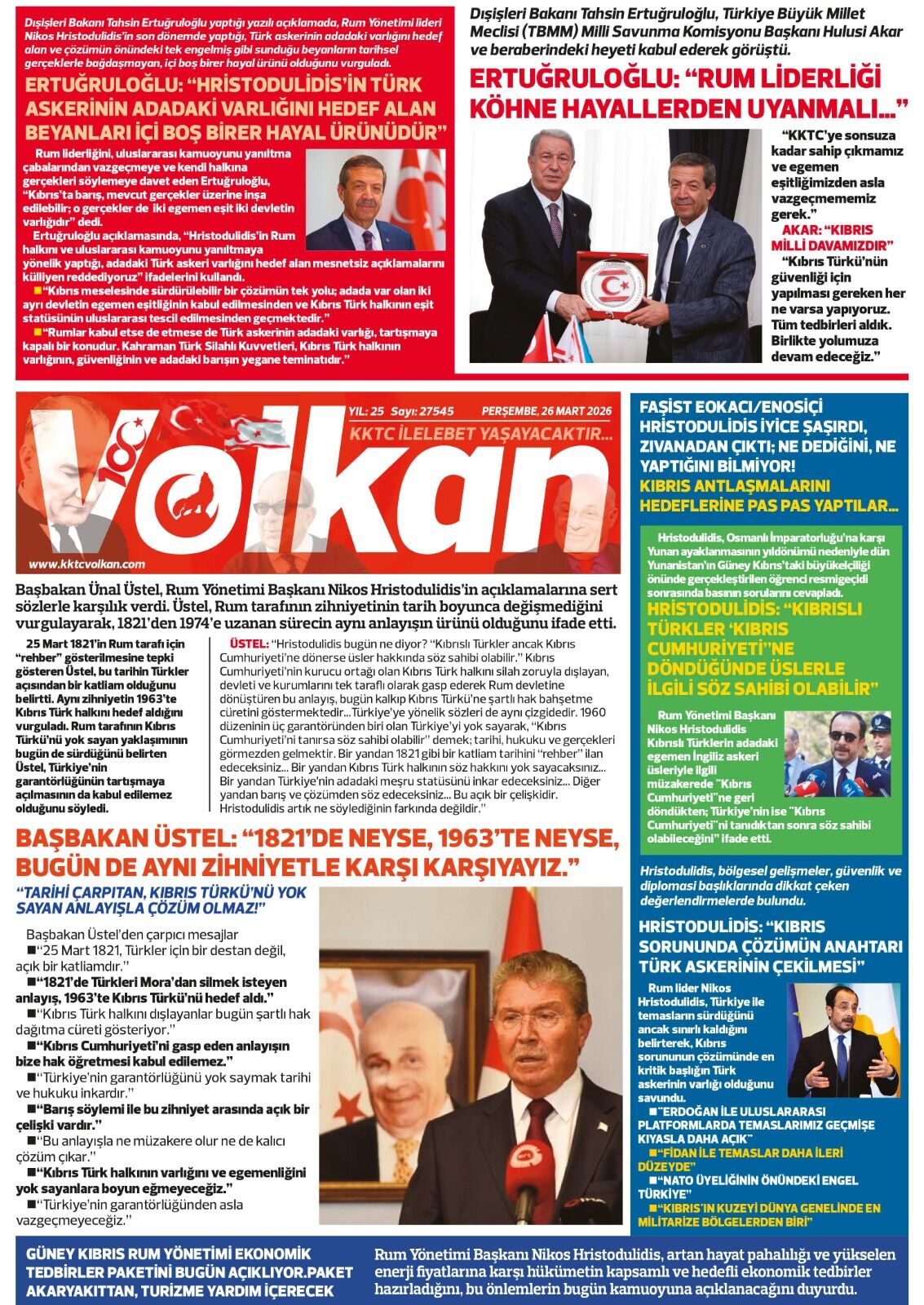BAŞBAKAN ÜSTEL’DEN HRİSTODULİDİS’İN ÜS AÇIKLAMALARINA YANIT