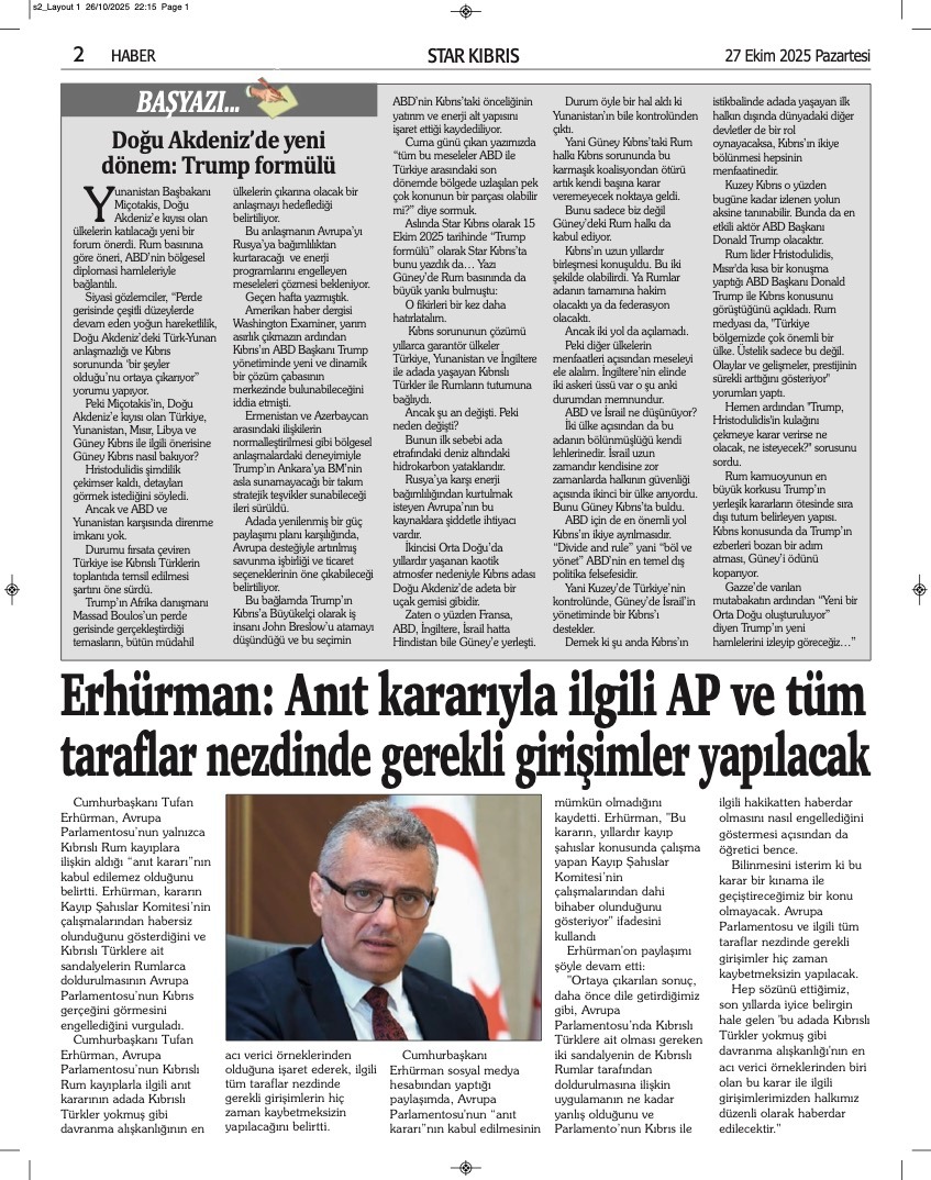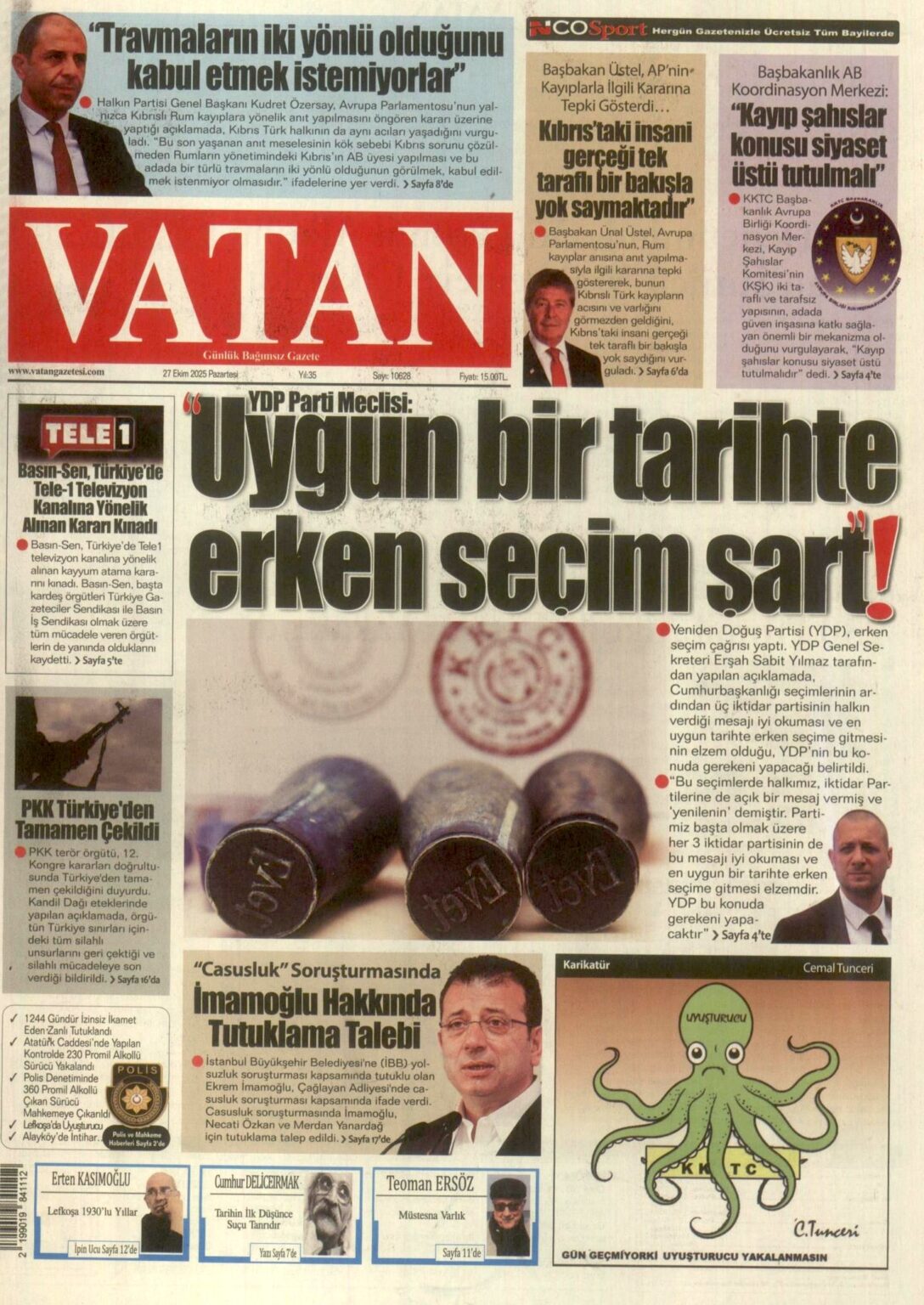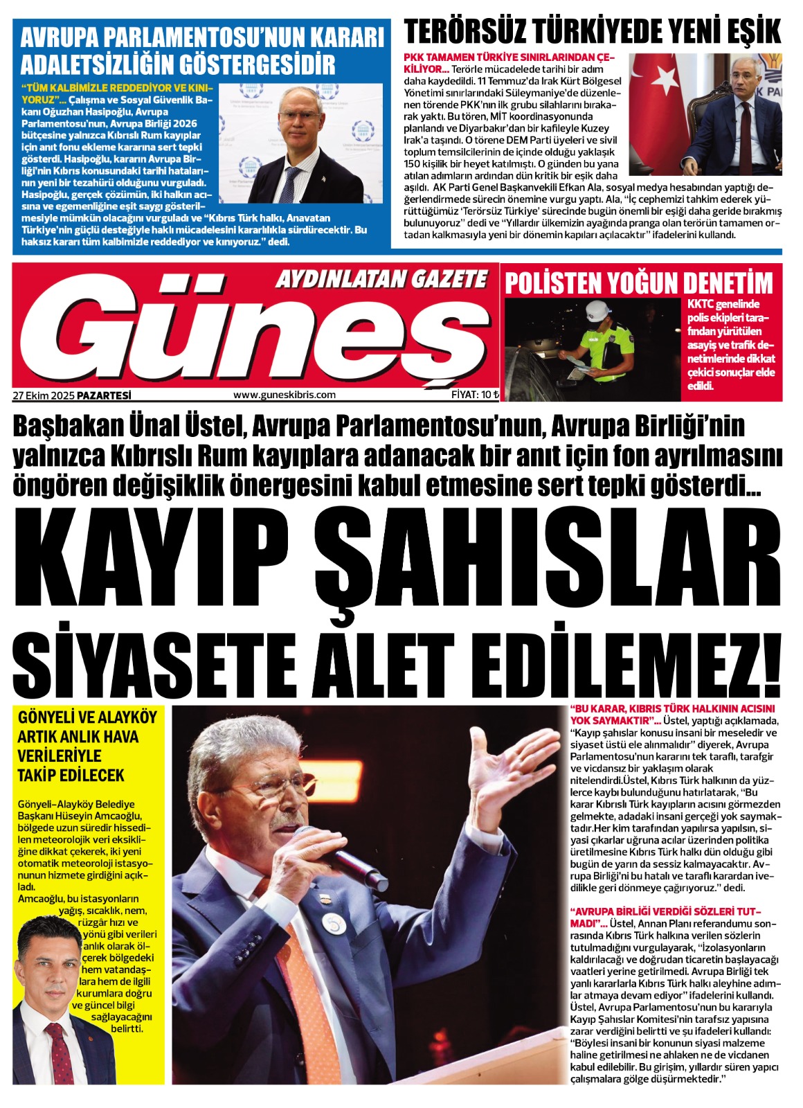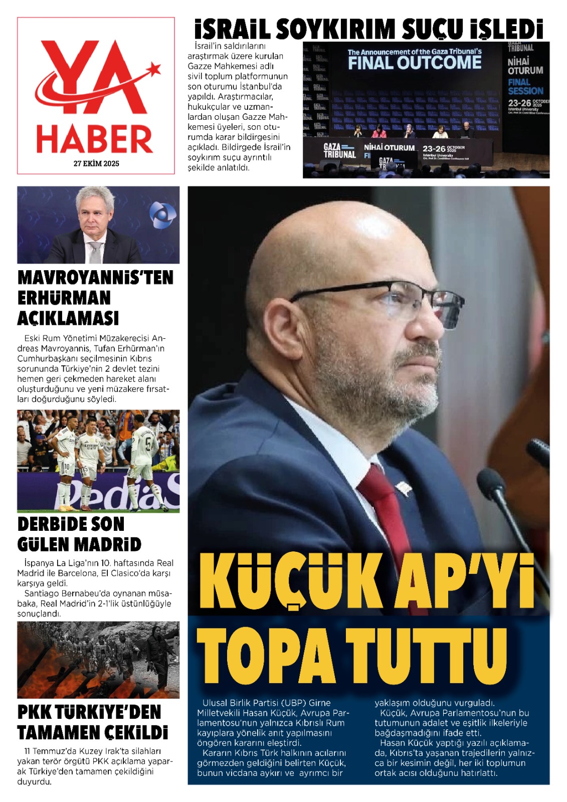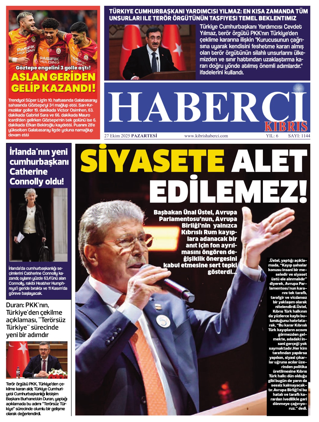 GAZETE MANŞETLERİ (27 EKİM 2025)