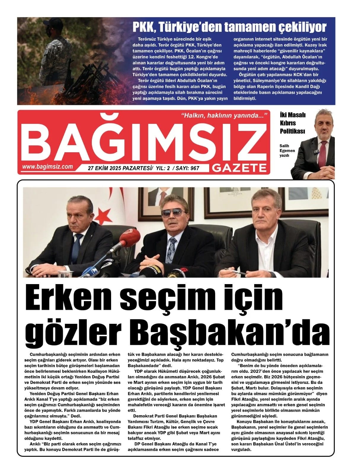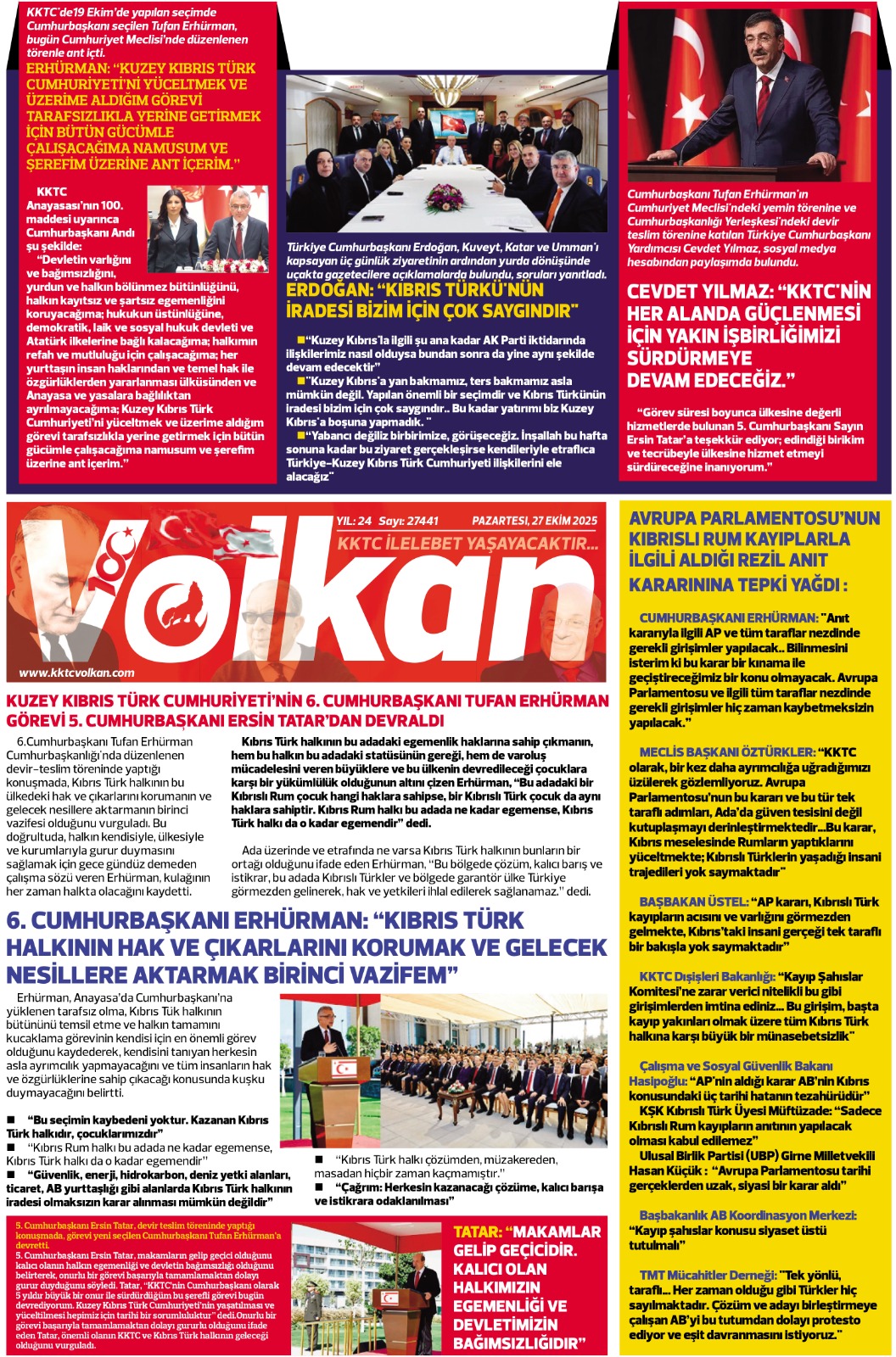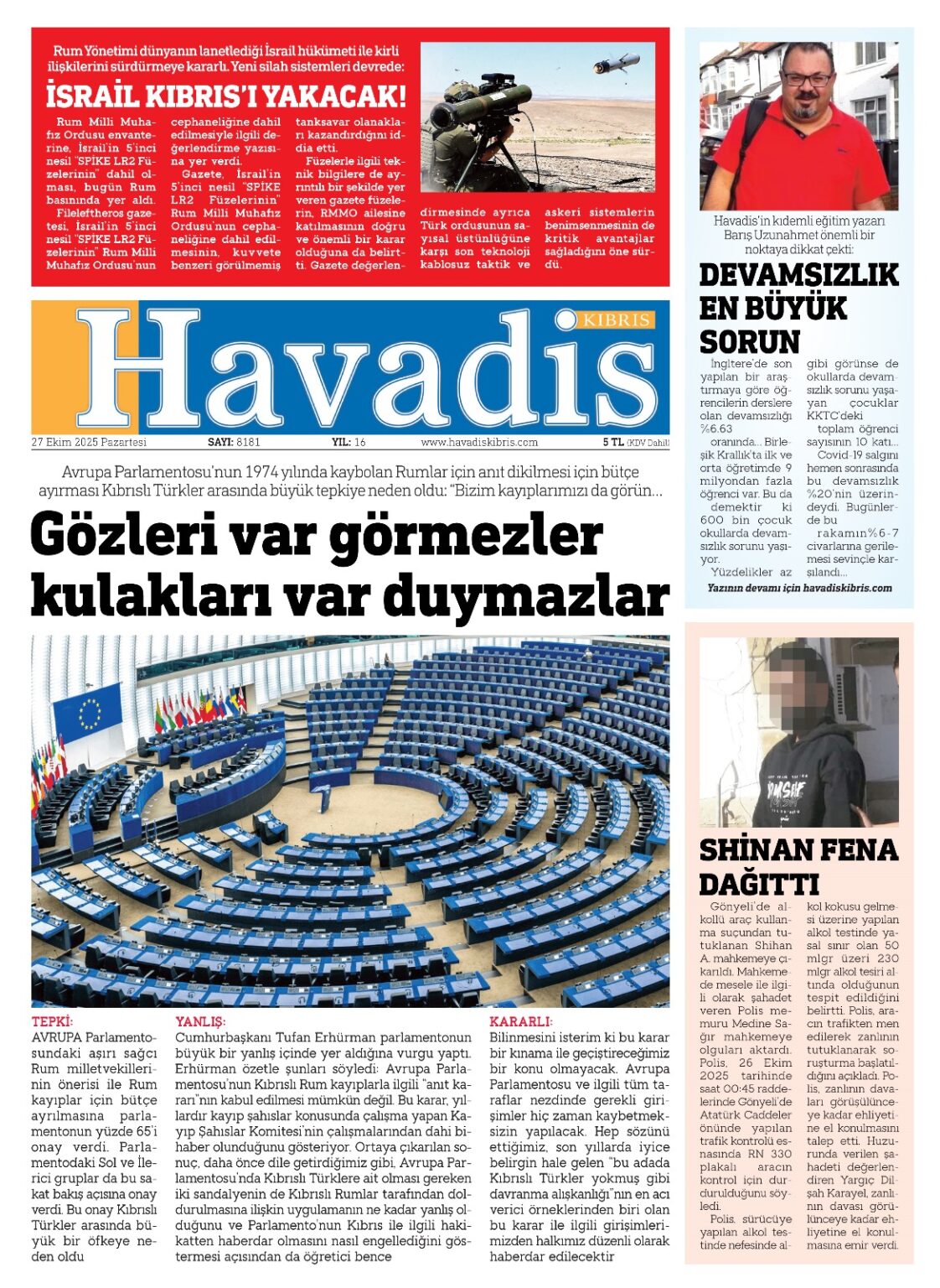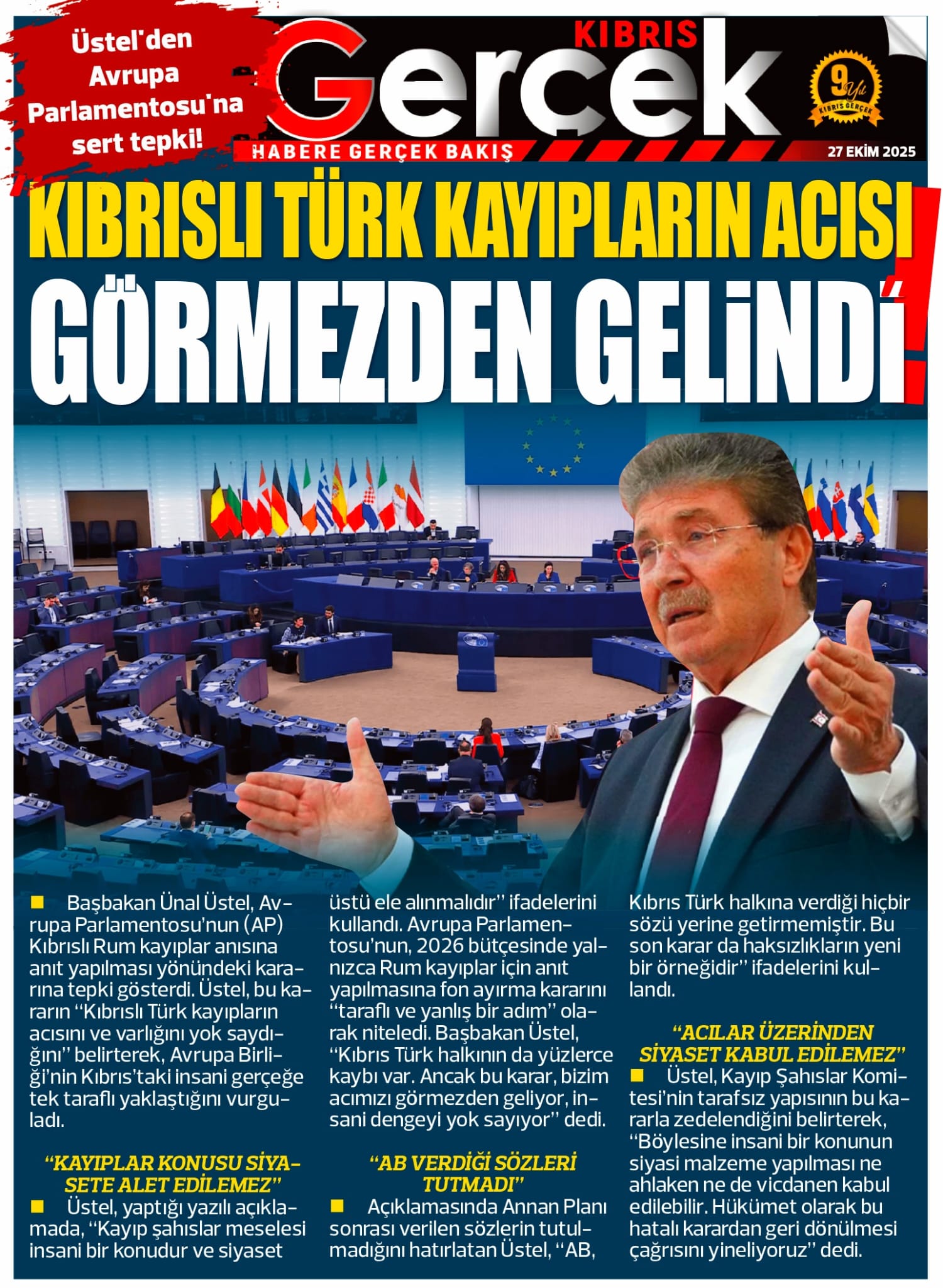 GAZETE MANŞETLERİ (27 EKİM 2025)