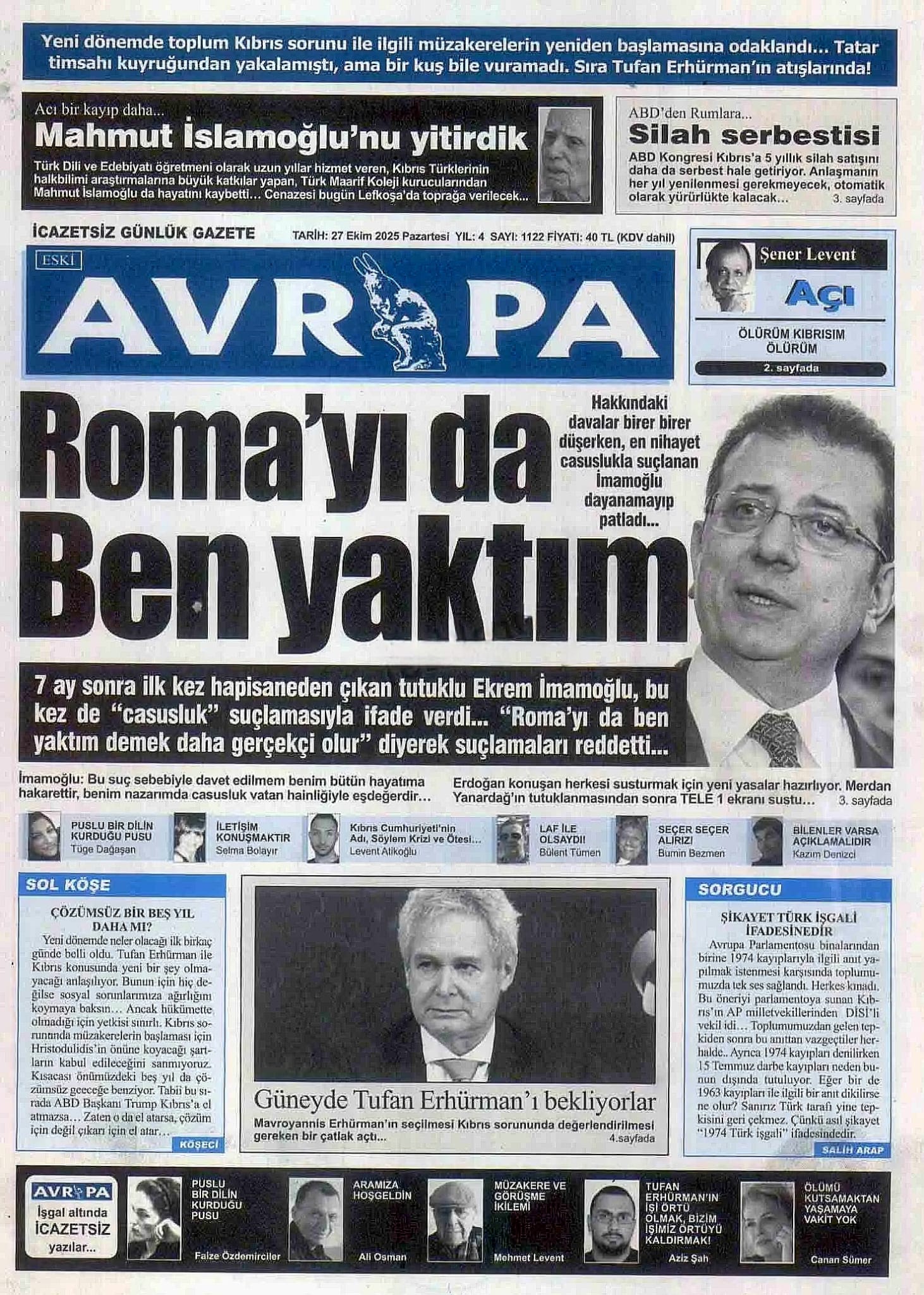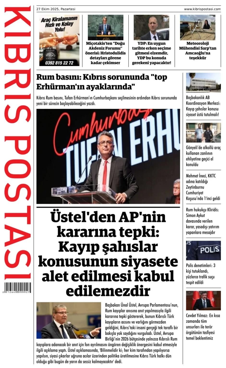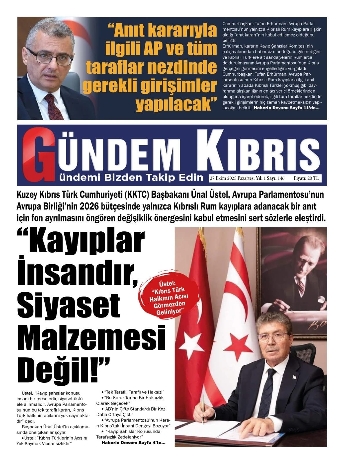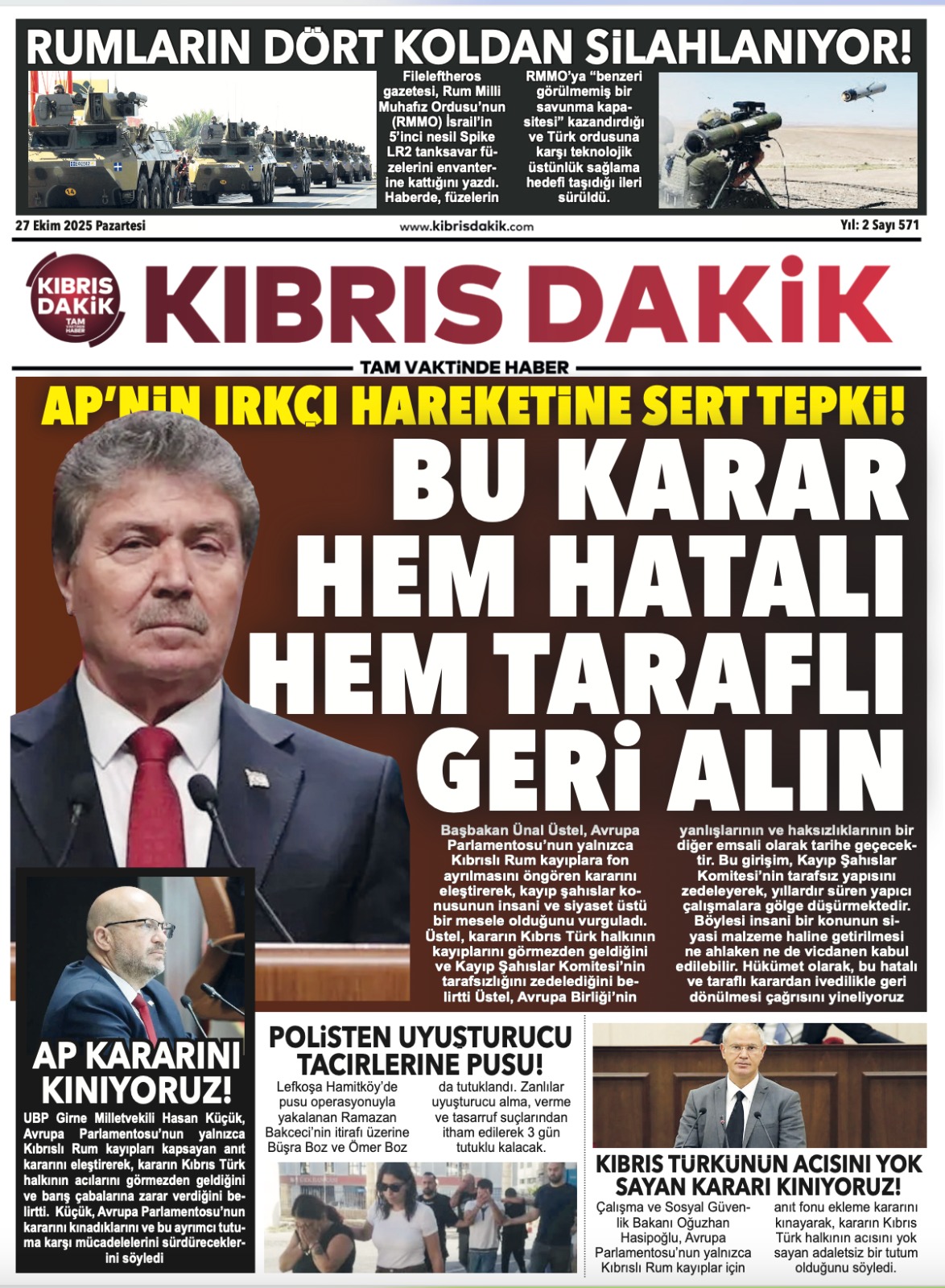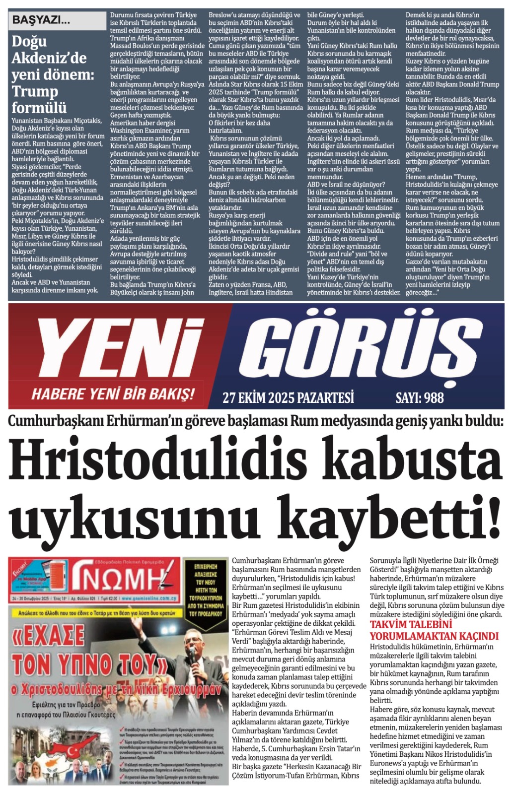 GAZETE MANŞETLERİ (27 EKİM 2025)