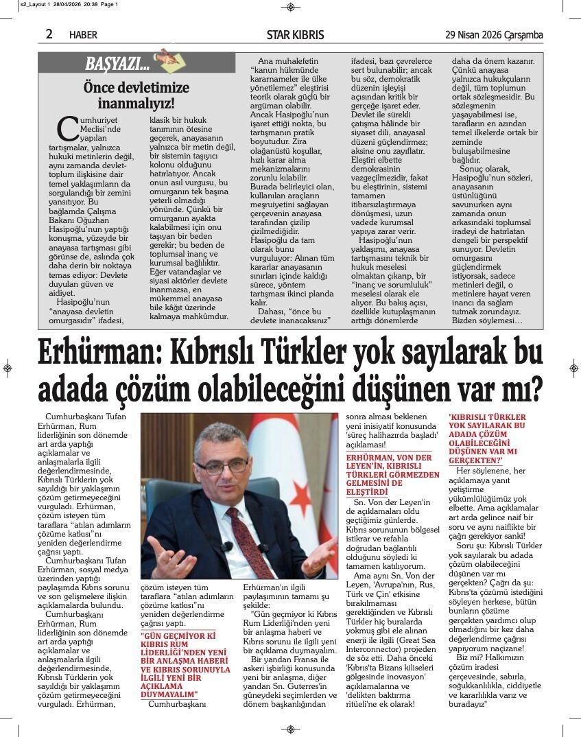GAZETE MANŞETLERİ (29 NİSAN 2026)