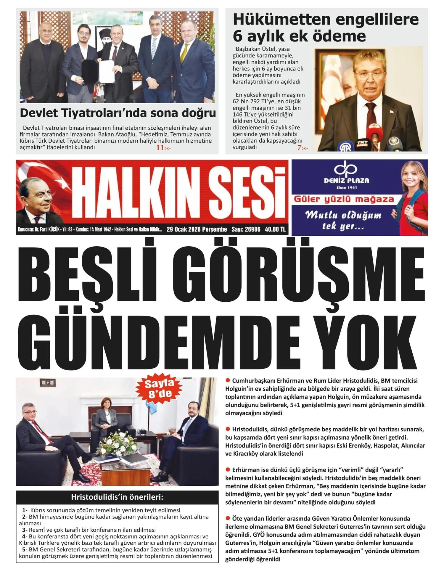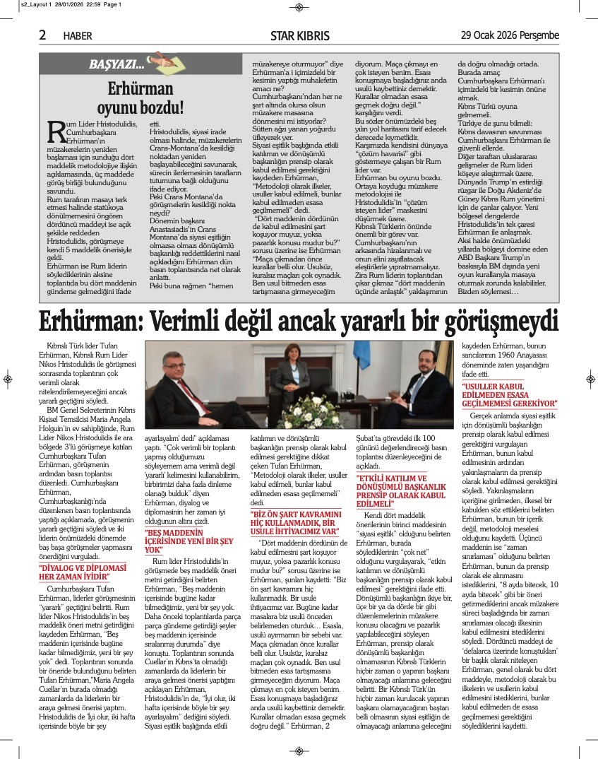 GAZETE MANŞETLERİ (29 OCAK 2026)