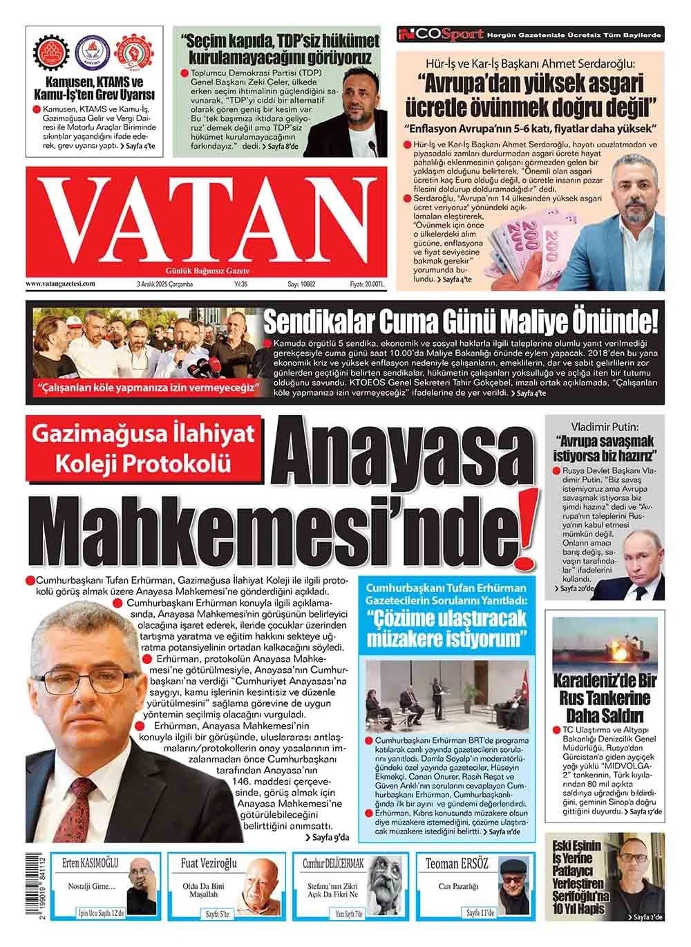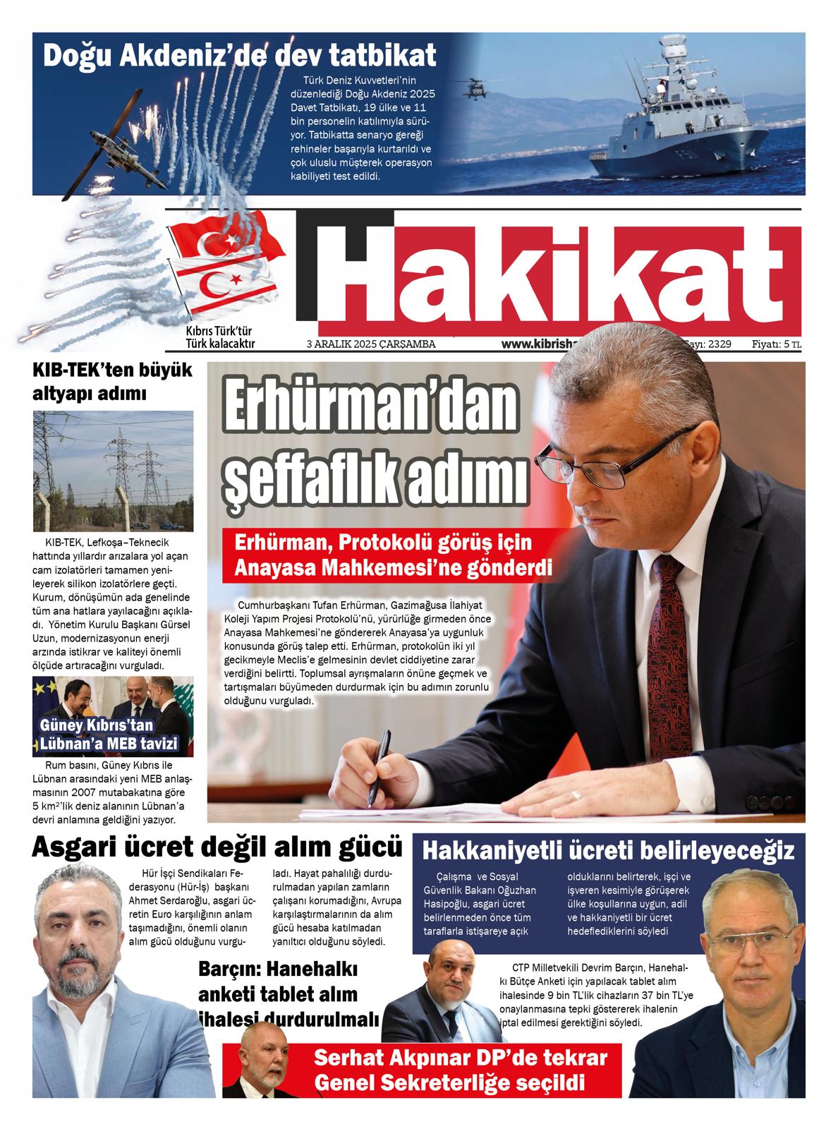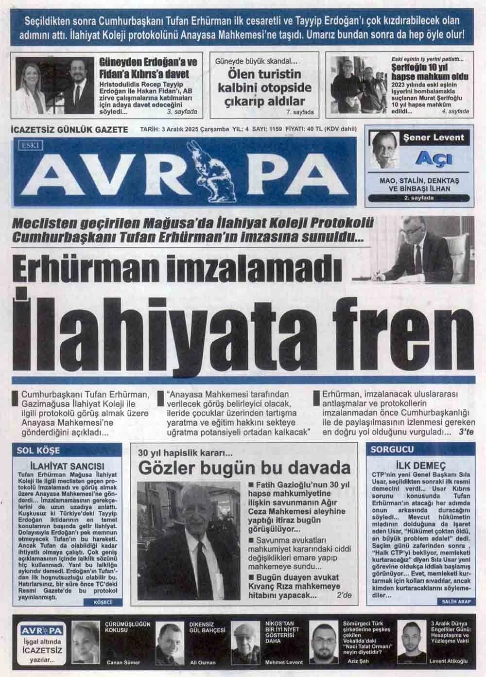 GAZETE MANŞETLERİ (3 ARALIK 2025)