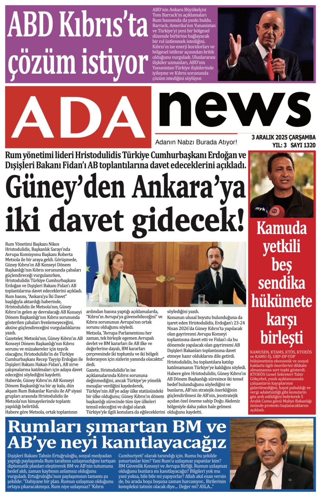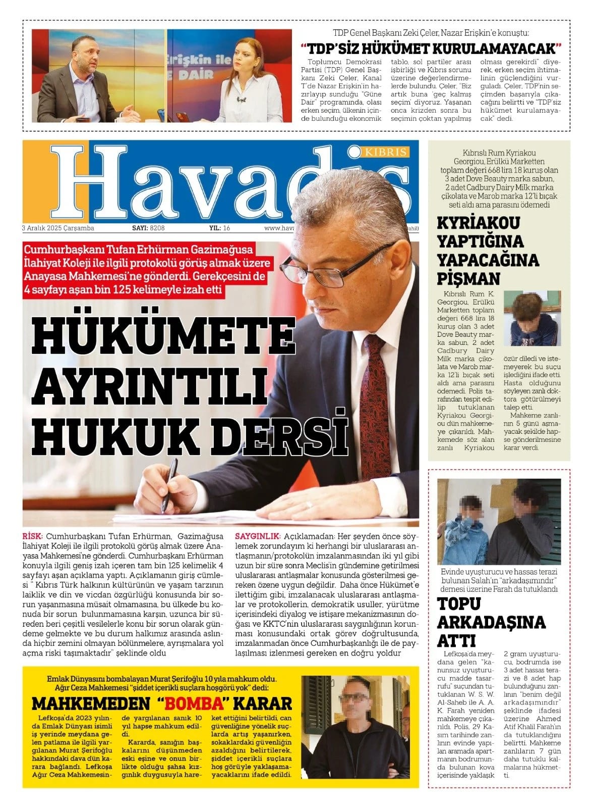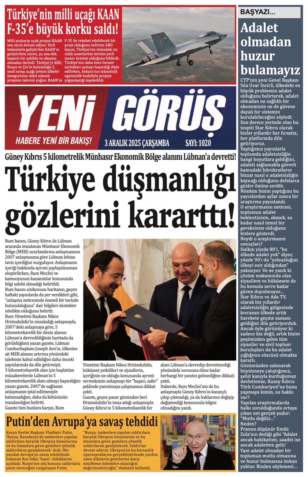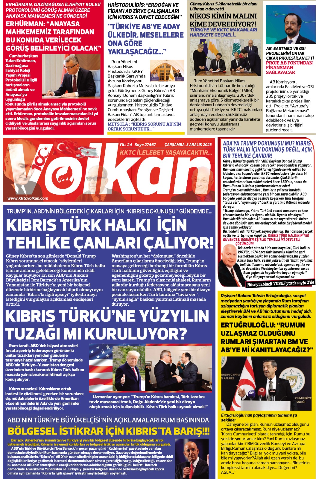 GAZETE MANŞETLERİ (3 ARALIK 2025)