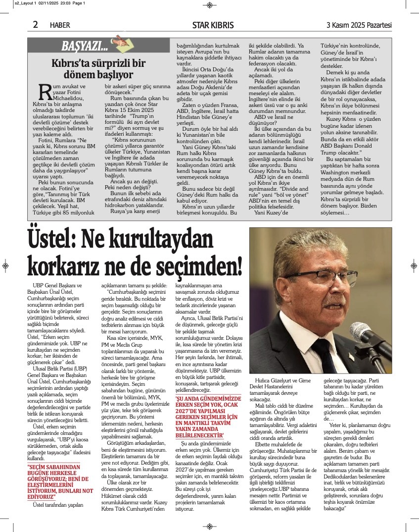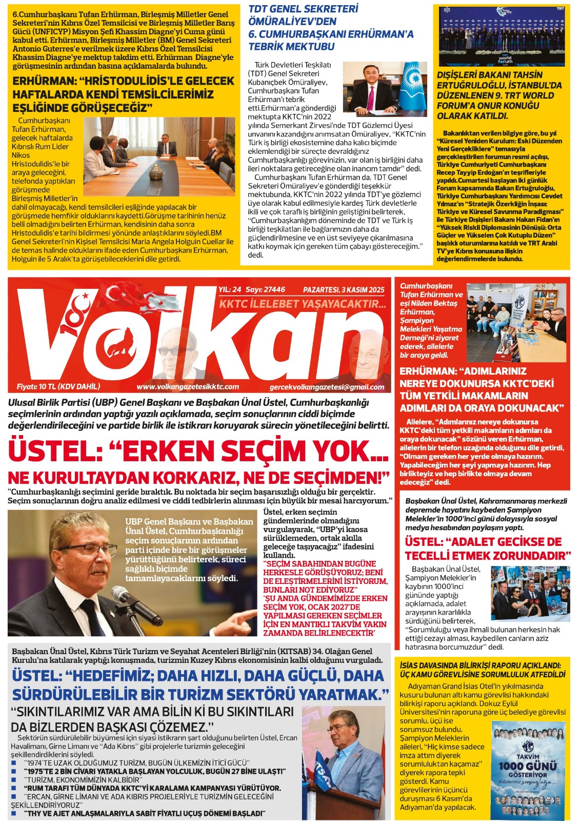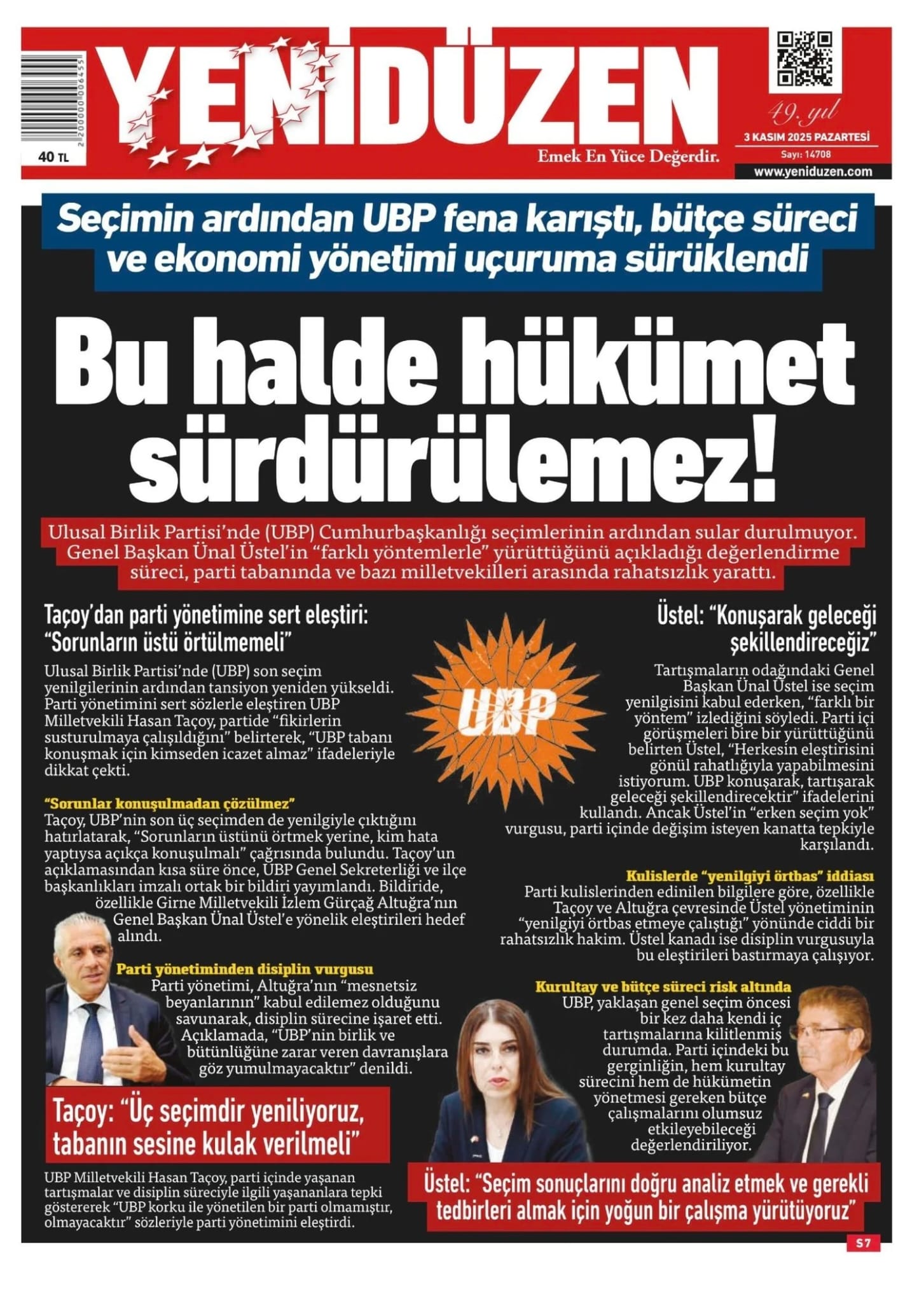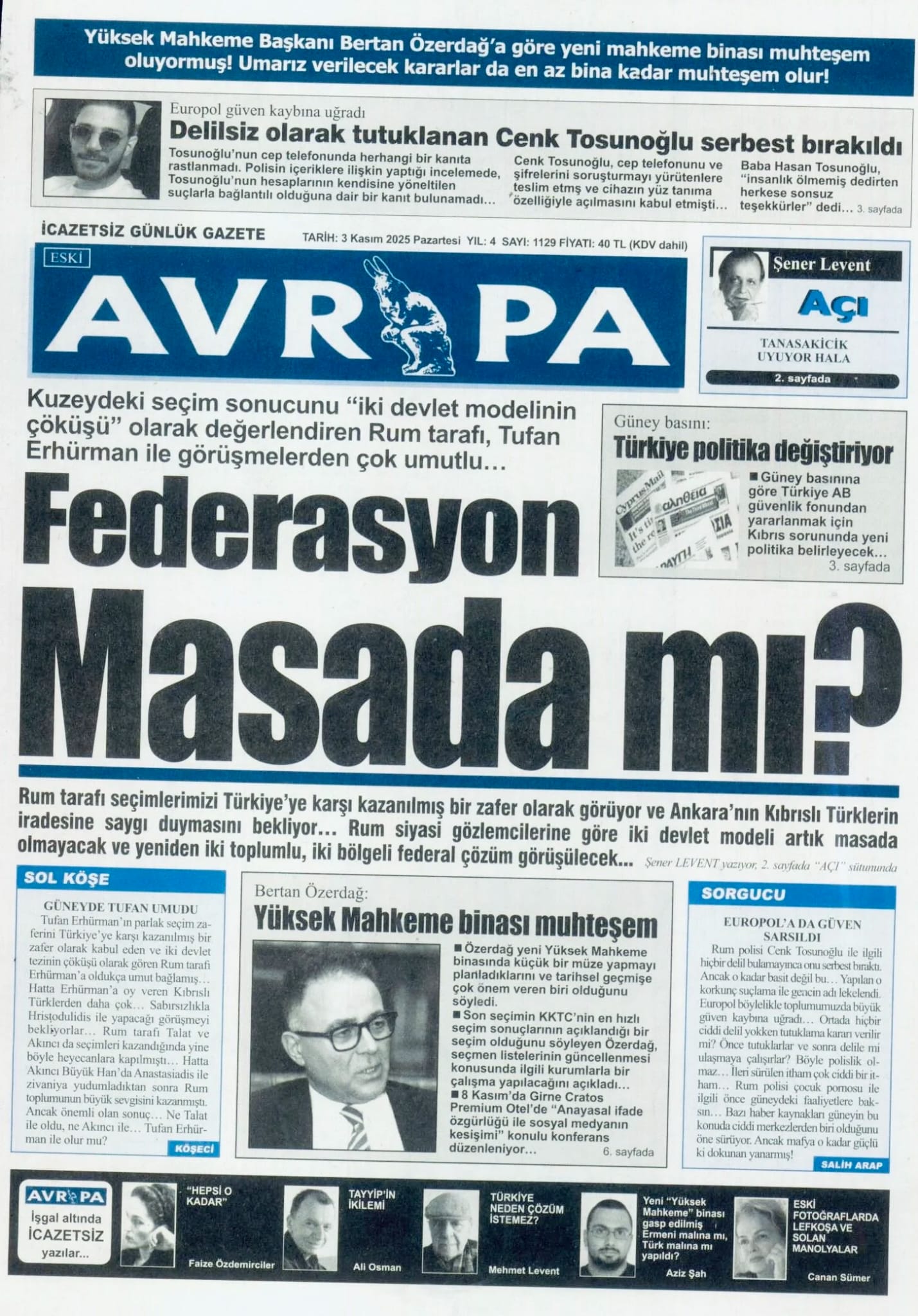 GAZETE MANŞETLERİ (3 KASIM 2025)
