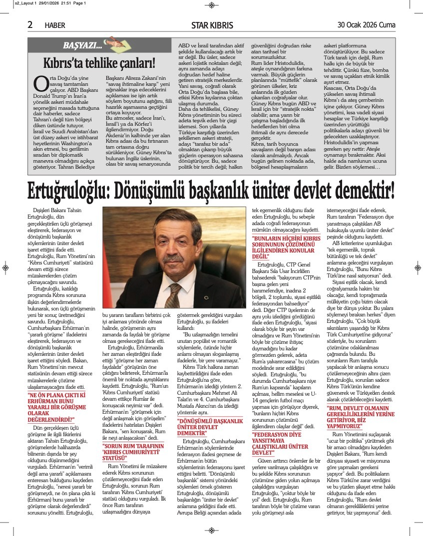 GAZETE MANŞETLERİ (30 OCAK 2026)