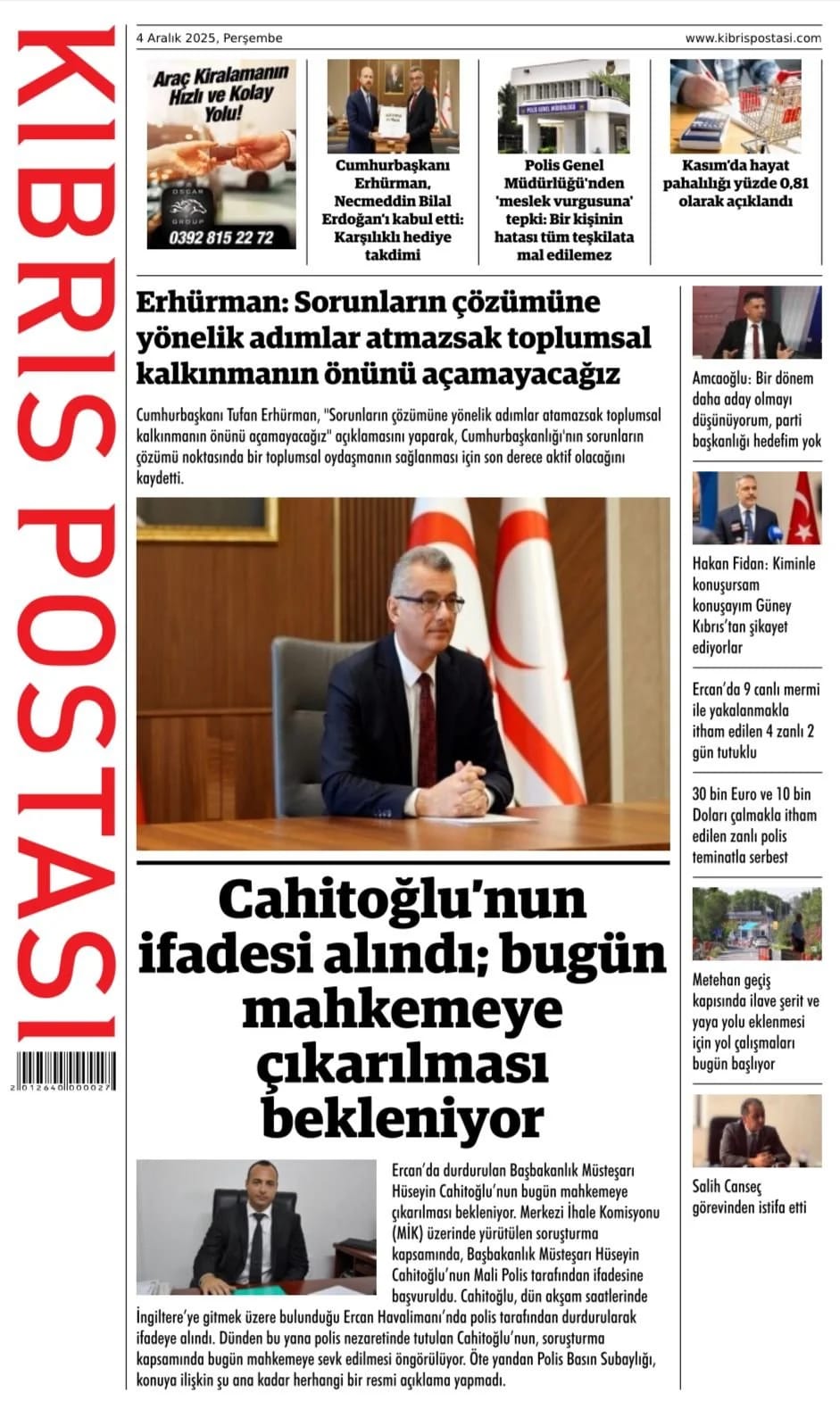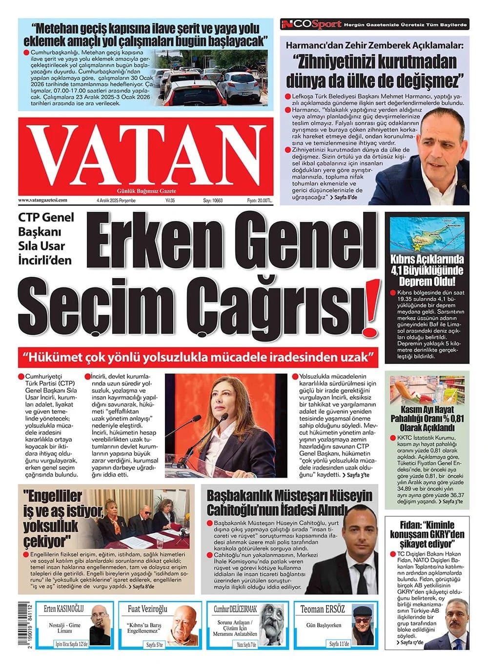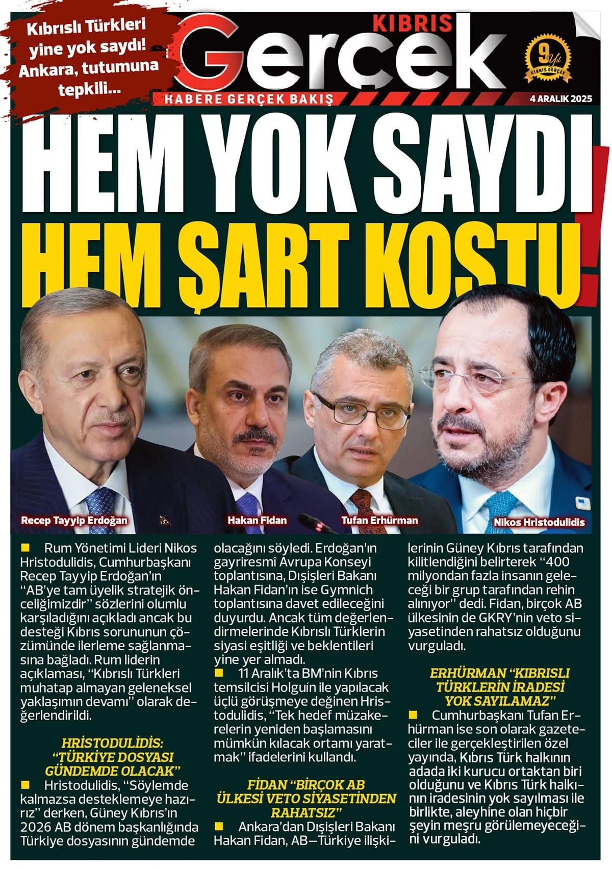 GAZETE MANŞETLERİ (4 ARALIK 2025)