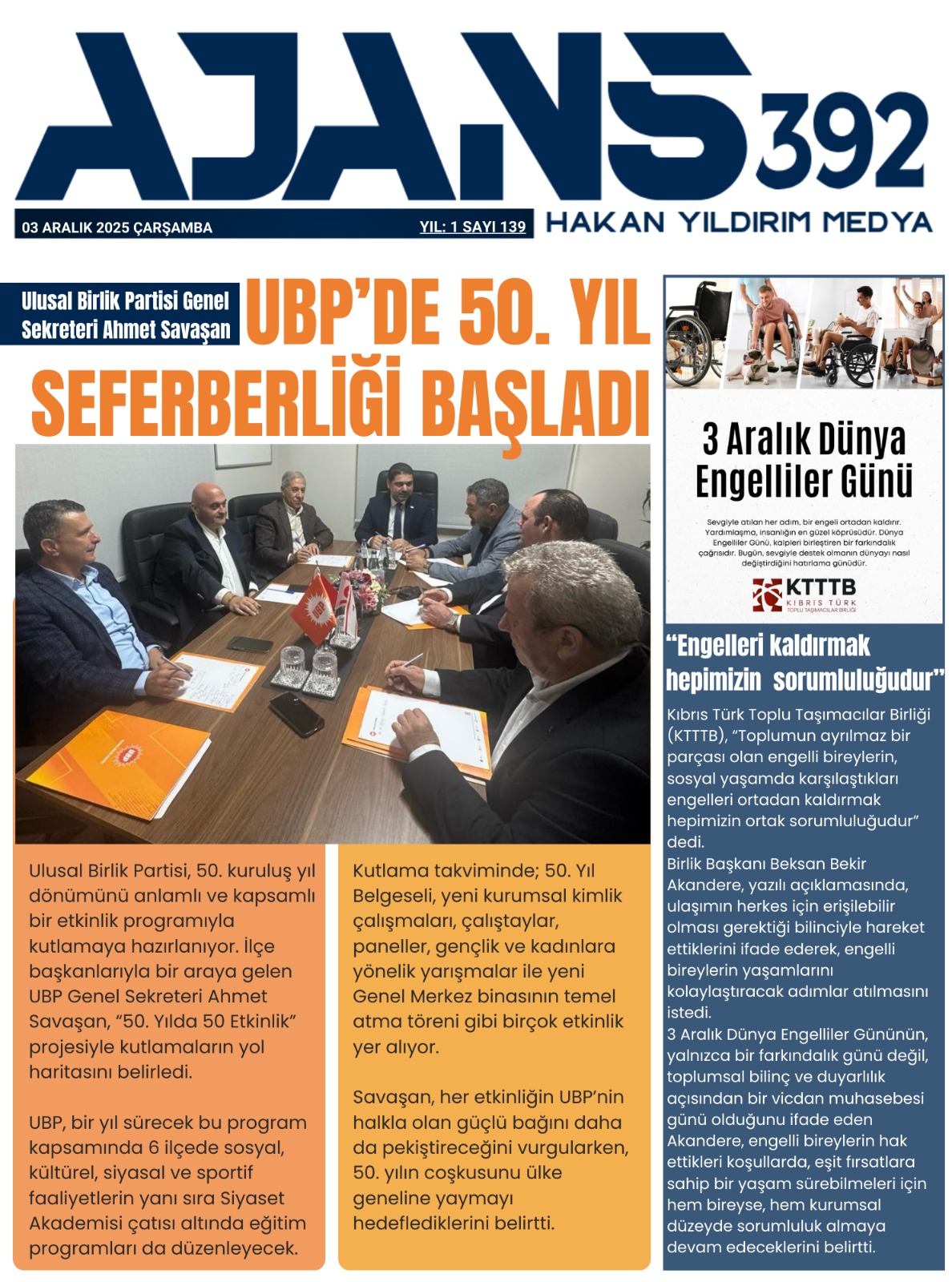 CTP’DEN 3 ARALIK ENGELLİLER GÜNÜ MESAJI
