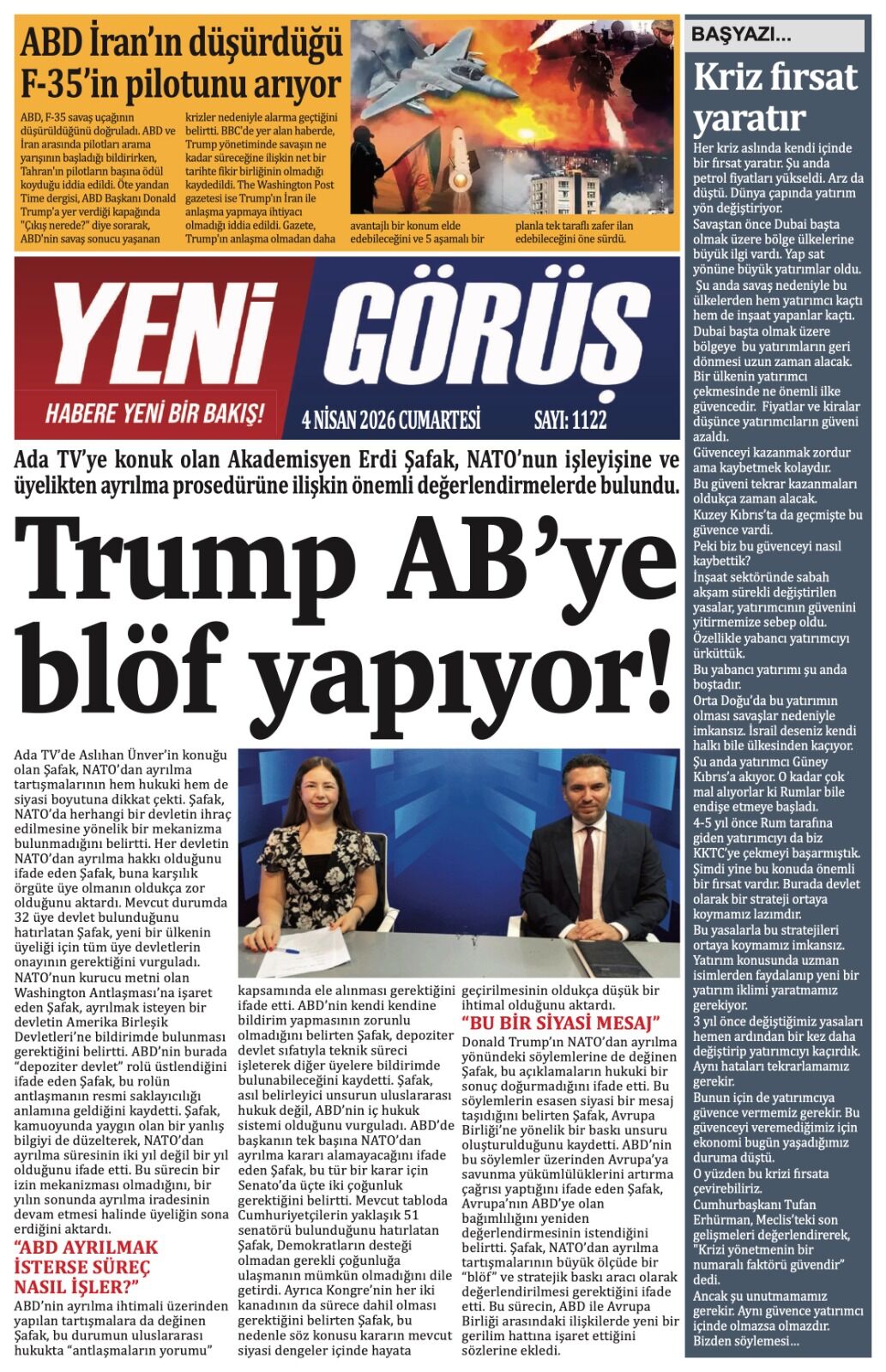 GAZETE MANŞETLERİ (4 NİSAN 2026)