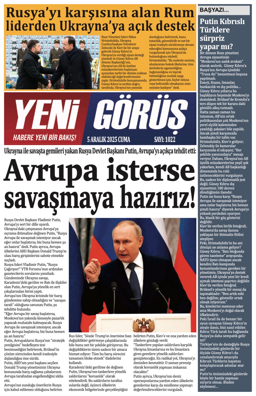 GAZETE MANŞETLERİ (5 ARALIKK 2025)