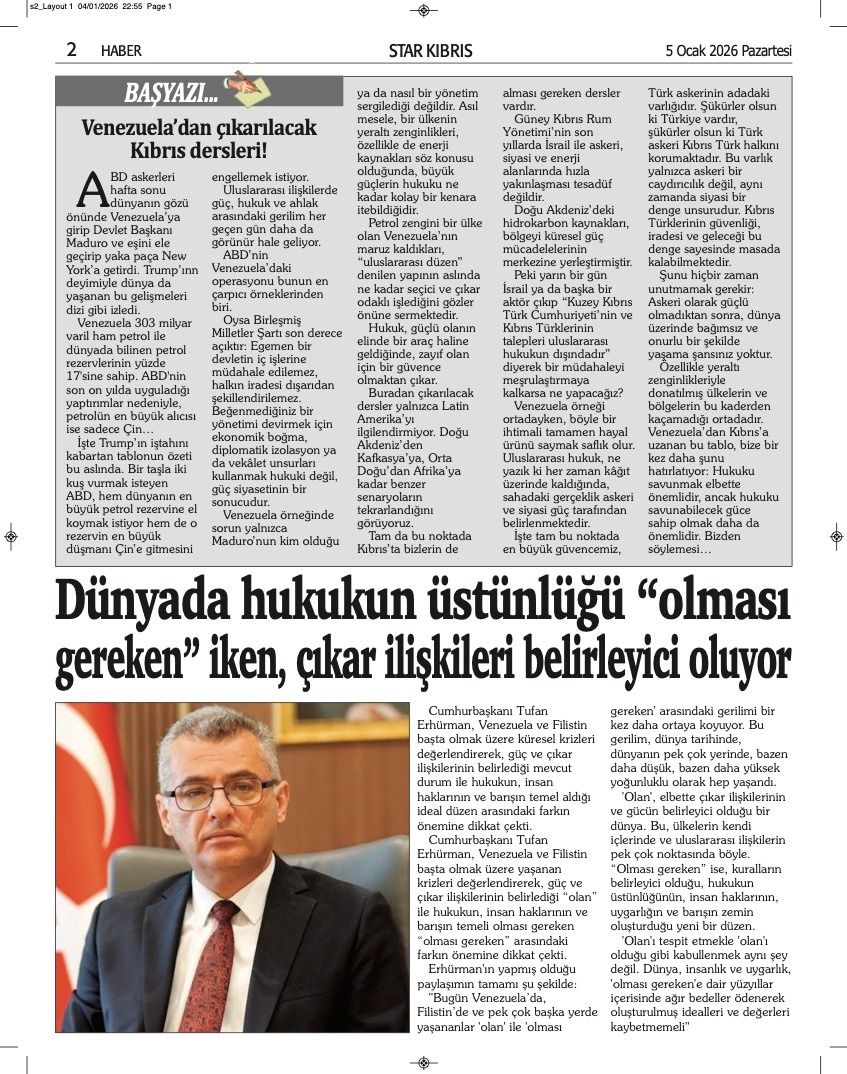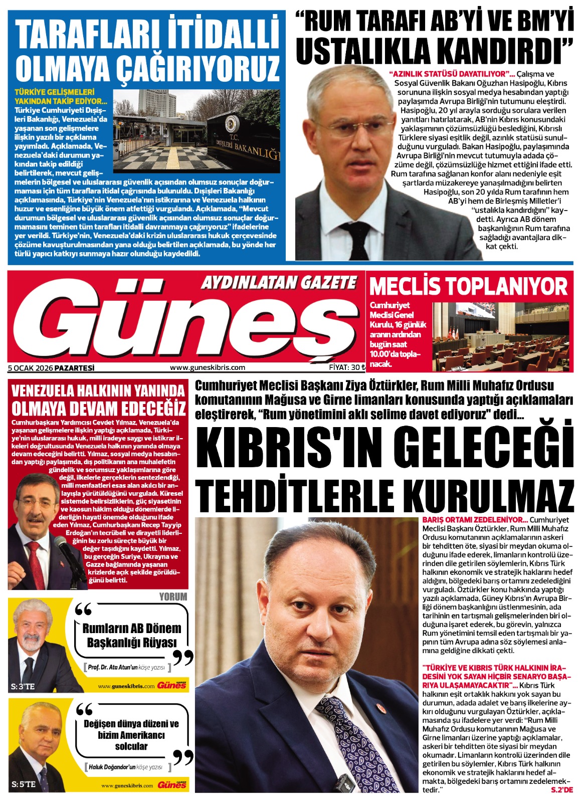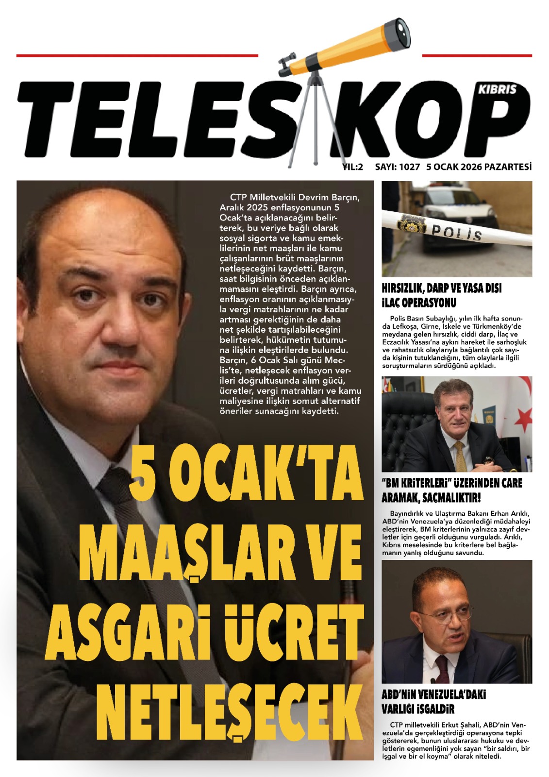 GAZETE MANŞETLERİ (5 OCAK 2026)