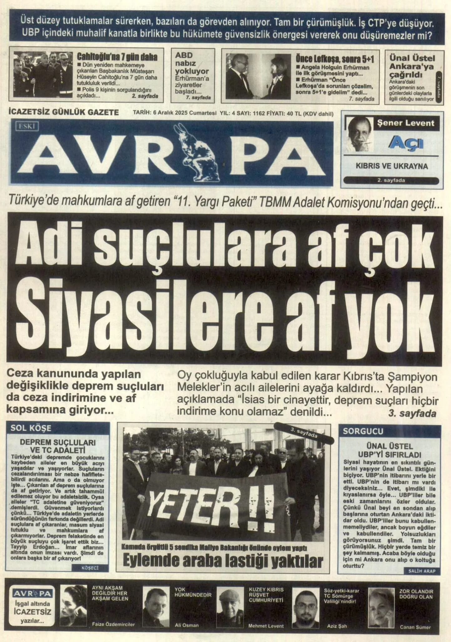 GAZETE MANŞETLERİ (6 KASIM 2025)