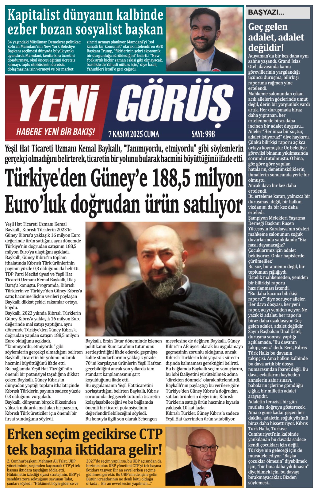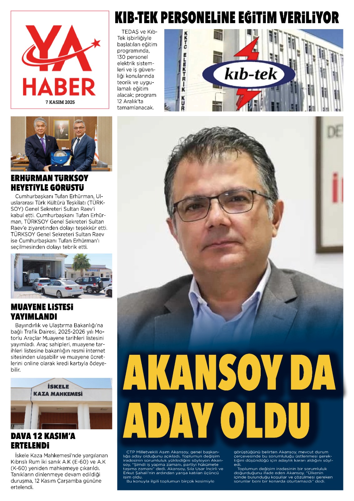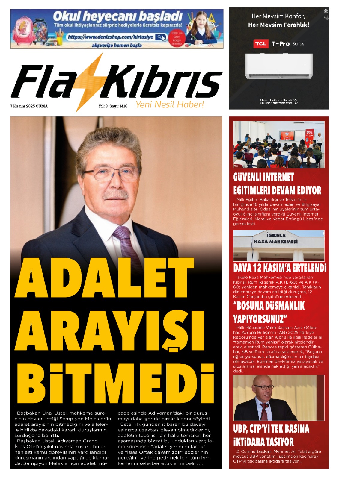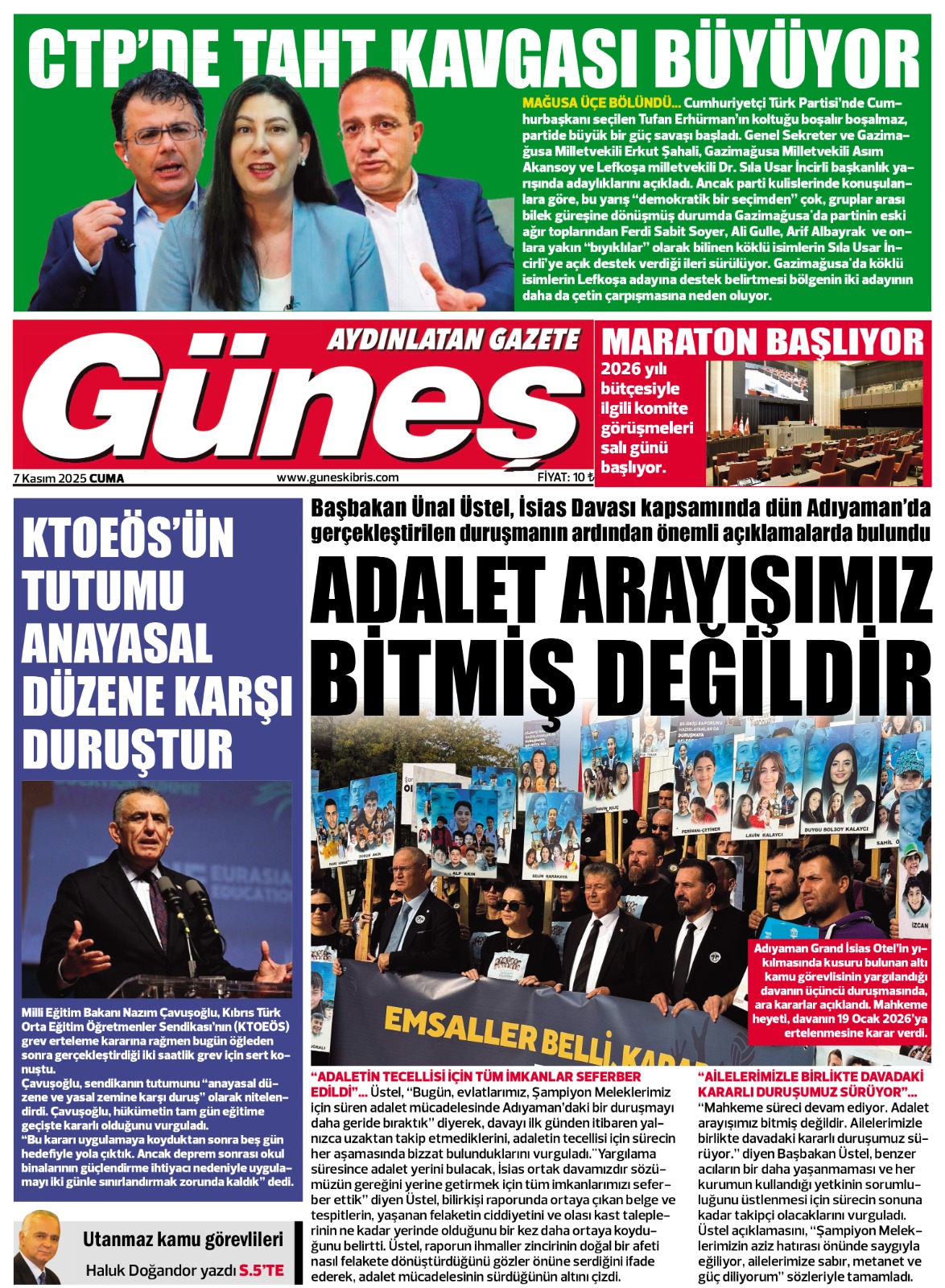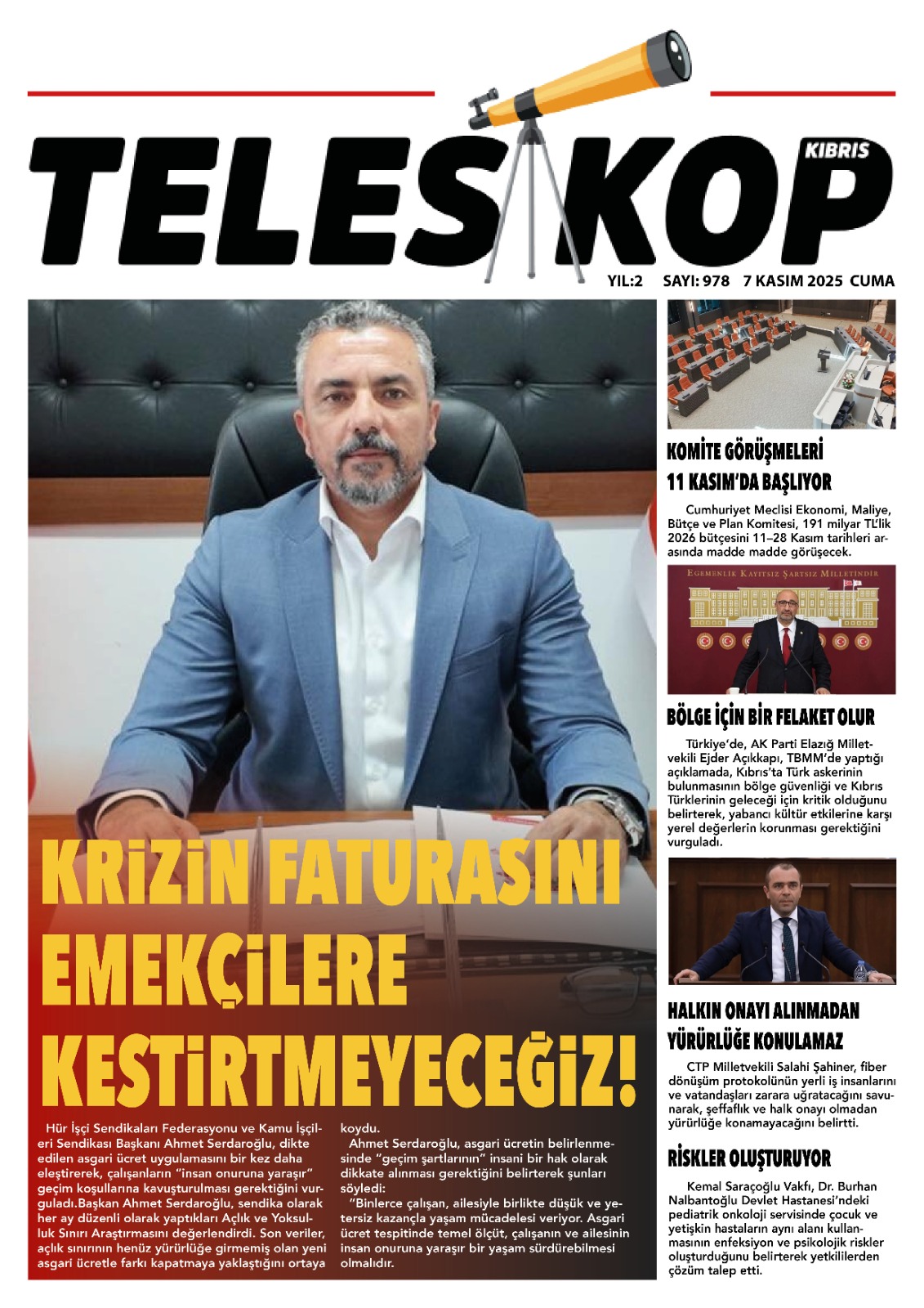 GAZETE MANŞETLERİ (7 KASIM 2025)