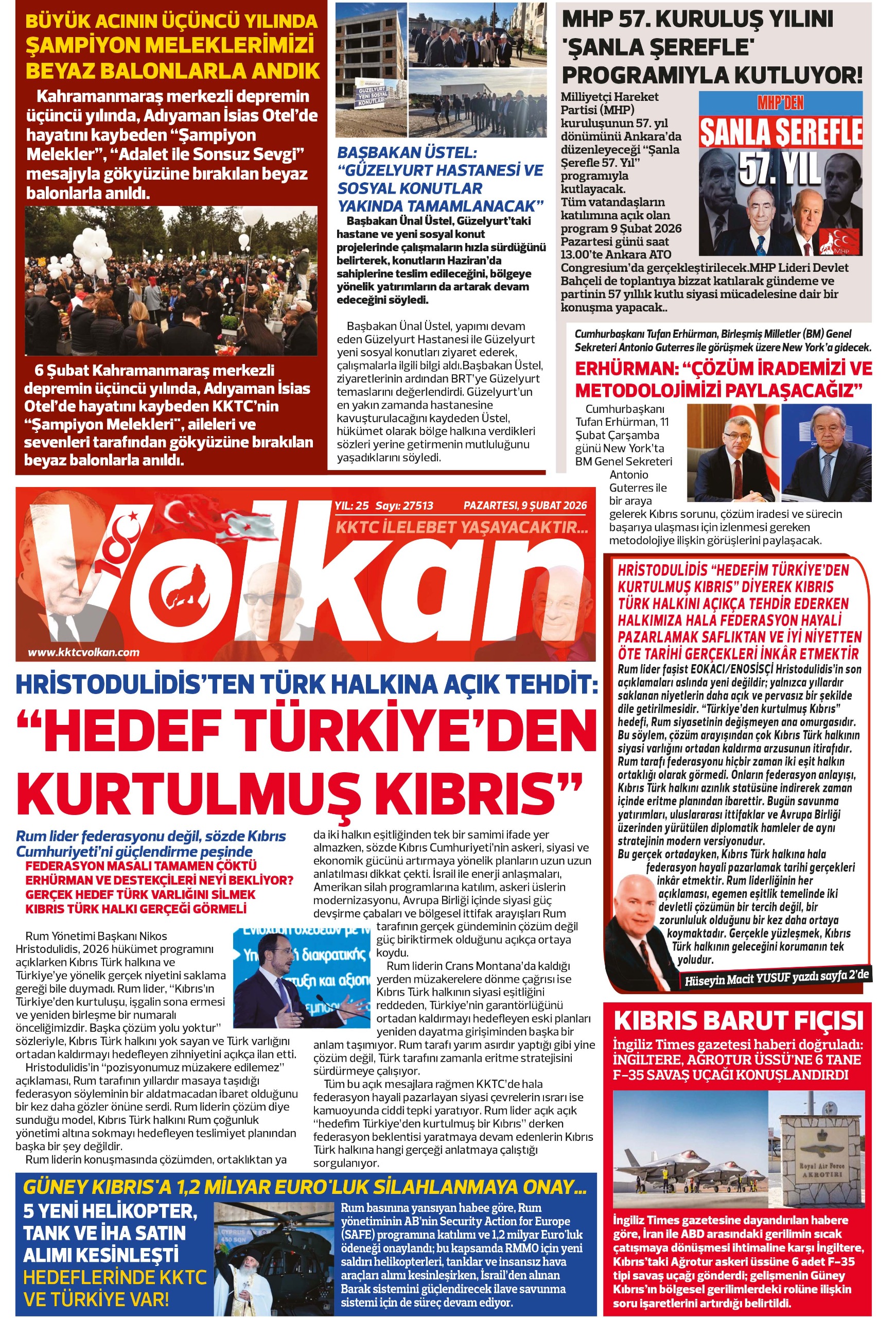 GAZETE MANŞETLERİ (9 ŞUBAT 2026)
