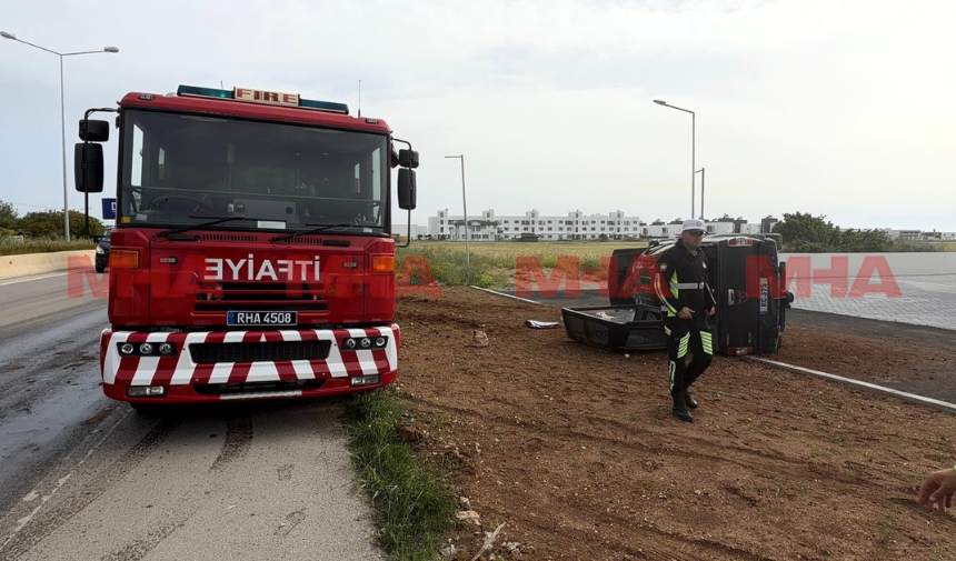 Gazimağusa-İskele Anayolu kavşağında, hidrolik sistemi arızalanan bir forkliftten yola dökülen yağ nedeniyle kayganlaşan zeminde bir araç kontrolden çıkarak takla attı. Araç sürücüsü kadın şahıs yaralandı. Olay yerine gelen ambulans ile yaralı kadın şahıs Gazimağusa Devlet Hastanesi’ne kaldırılıp müşahede altına alındı. Ayrıca olay yerine itfaiye ekipleri sevk edildi. Söz konusu hidrolik yağı döken forklift olay yerinden 200 metre uzaklıkta yol kenarında bulundu. Polis, olayla ilgili soruşturmasını sürdürüyor. (MHA)