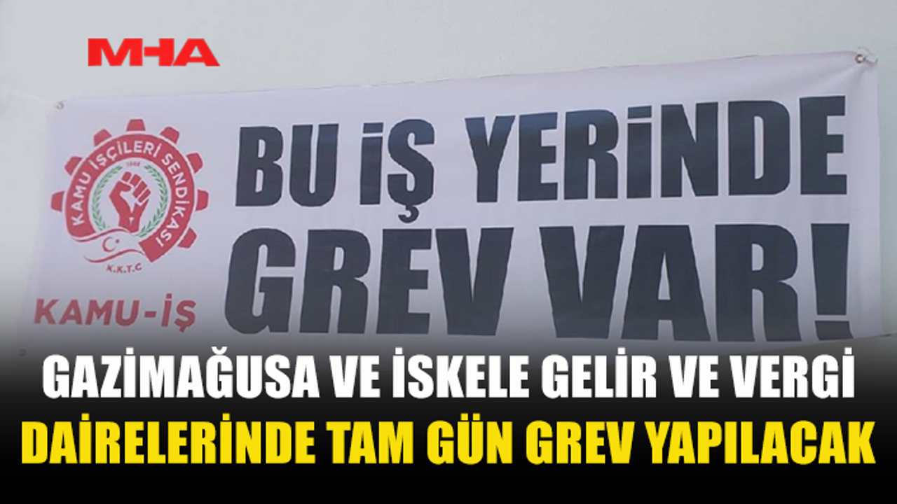 Kıbrıs Türk Kamu Görevlileri Sendikası (KAMUSEN), Kıbrıs Türk Amme Memurları Sendikası (KTAMS) ve Kıbrıs Türk Kamu İşçileri Sendikası (KAMU-İŞ), personel eksikliği, yapısal sorunlar, altyapı yetersizlikleri ve bina işlevselliğine ilişkin sorunlar gerekçesiyle Gazimağusa ve İskele Gelir ve Vergi Dairelerinde cuma günü tam gün greve gidecek.