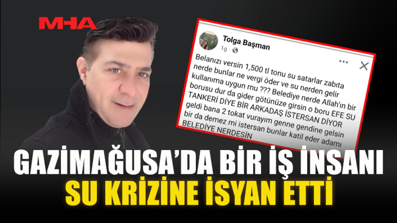 Gazimağusa’da son günlerde yaşanan su sıkıntısı vatandaşların tepkisine neden olurken, su fiyatlarındaki artış kamuoyunda tartışma yarattı. Bazı su dağıtıcılarının ton başına 1.500 TL talep ettiği iddiaları, iş insanı Tolga Başman’ın sert tepkisine yol açtı.