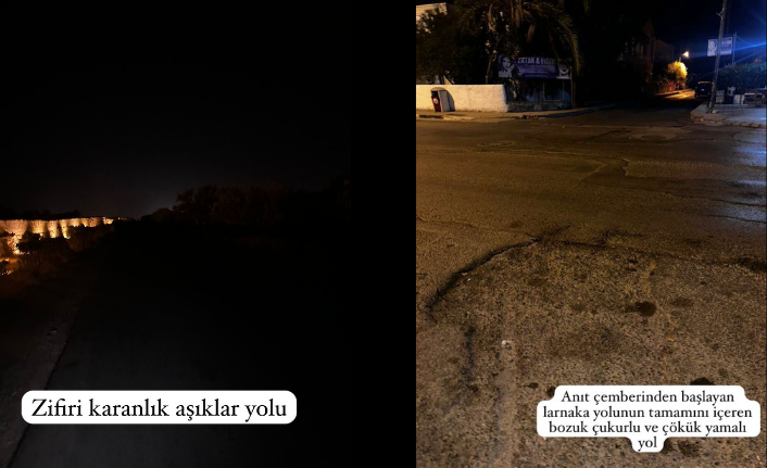 Şehrin vitrini sayılan Salamis yolu ile Palm Beach arasındaki güzergâh, bugün delik deşik, yamalarla kaplı ve sürücüler için ölüm tuzağına dönüşmüş durumda. Ara sokaklar da farklı değil; her köşede derin çukurlar, kırık kaldırımlar ve karanlığa gömülmüş sokaklar var. Özellikle motosiklet sürücüleri için bu yollar ölüm riski taşıyor. Buna rağmen belediye yönetiminin en ufak bir adım atmadığı görülüyor.