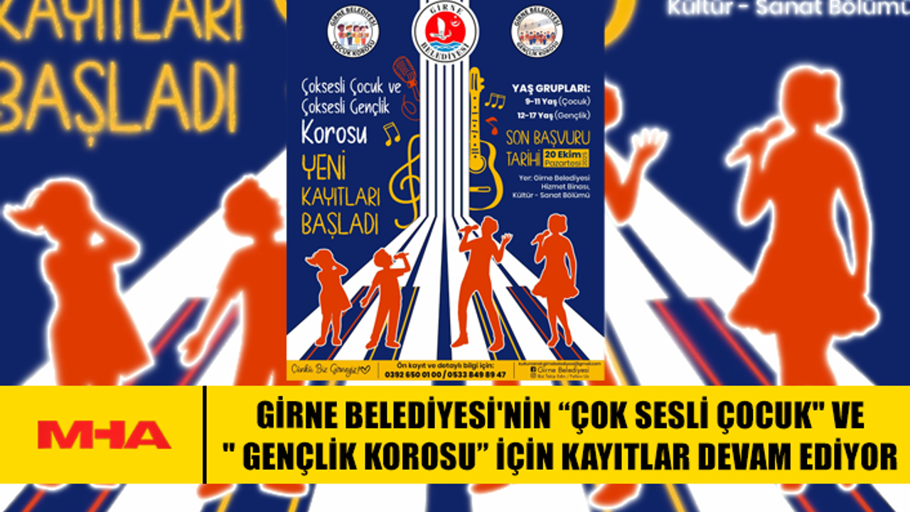 Girne Belediyesi'nin “Çok Sesli Çocuk” ve “Çok Sesli Gençlik Korosu” için yeni dönem kayıtları devam ediyor. Koroya katılmak isteyenler 20 Ekim Pazartesi gününe kadar başvuruda bulunabilir.