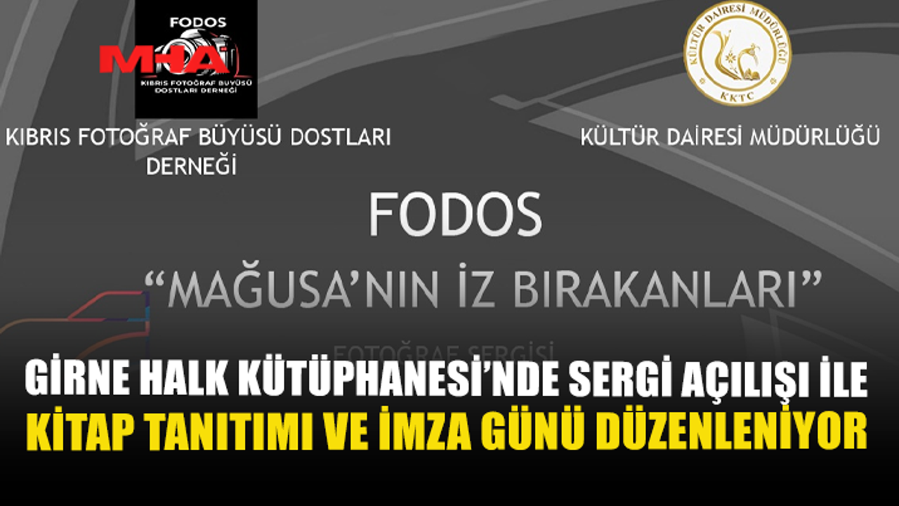 Başbakan Yardımcılığı Turizm Kültür Gençlik ve Çevre Bakanlığı’na bağlı Kültür Dairesi’nin Güzel Sanatlarla İlgili Derneklere Yardım Tüzüğü kapsamında katkı yaptığı Kıbrıs Fotoğraf Büyüsü Dostları Derneği’nin (FODOS) “Mağusa’nın İz Bırakanları” isimli fotoğraf sergisi, Girne Halk Kütüphanesi Ziya Rızkı Arşivi ve Sergi Salonu’nda sanatseverlerin izlenimine sunuluyor.