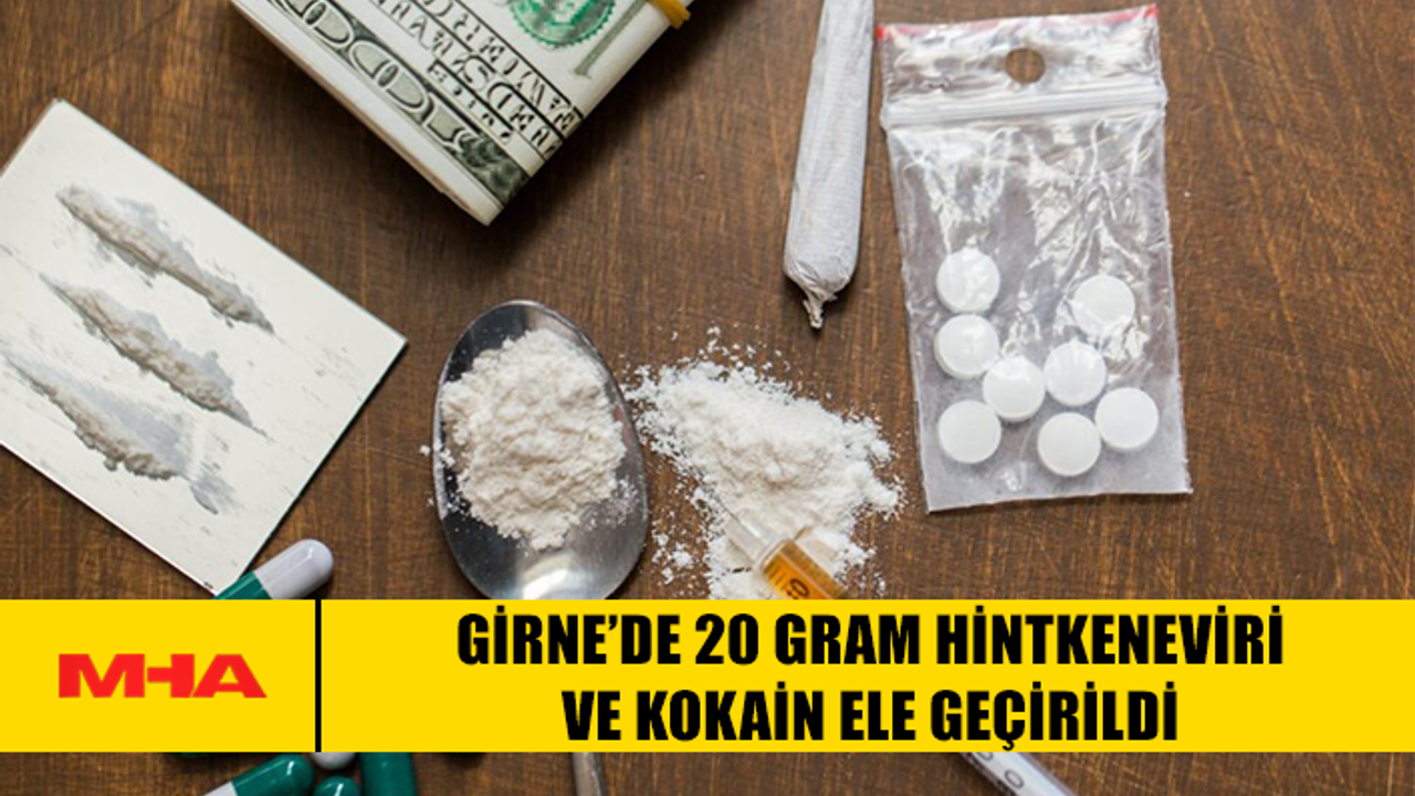 Polis Basın Subaylığı’ndan alınan bilgiye göre 08.10.2025 tarihinde, saat 23.00 sıralarında, Girne’de Yasemin Sokak’ta, Girne Polis Müdürlüğü’ne bağlı Cürümleri Önleme Şube Amirliği Ekipleri tarafından şüpheli olarak görülen A.E.(E-21) ile G.S.(K-22)’nin üzerlerinde ve bulundukları araçta yapılan aramalarda, tasarruflarında toplam 20 gram ağırlığında hintkeneviri türü ile 4 gram ağırlığında kokain türü uyuşturucu olduğuna inanılan maddeler, içerisinde hintkeneviri türü uyuşturucu madde kalıntısı olduğuna inanılan öğütücü ve uyuşturucu madde satışından temin edildiğine inanılan toplam 7.100 TL, 260 Stg, 415 ABD Doları ve 40 Euro nakit para bulunarak emare olarak alınmıştır.