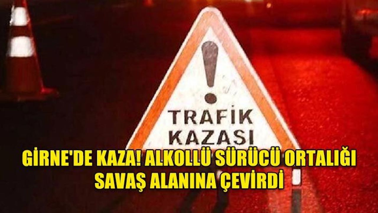 16.03.2023 tarihinde, saat 04:00 sıralarında, Girne’de Naci Talat Caddesi üzerinde, Hamlet Nkwenyı WAMBONG (E-31) 250 miligram alkollü içki tesiri altında, yönetimindeki JG 454 plakalı salon araç ile batı istikametine doğru seyrettiği sırada, dikkatsiziliği sonucu yolun solundan çıkmış ve bir marketin araç park yeri içerisinde park halinde bulunan JM 381 plakalı araca çarpmıştır. Çarpmadan etkisiyle, JG 454 plakalı araç yoluna devam edip market önünde bulunan buzluk ve raflara da çarpıp durmuştur. Kaza sonucu yaralanan olmadı. JG 454 plakalı araç sürücüsü Hamlet Nkwenyı WAMBONG tutuklanmış olup, soruşturma devam etmektedir.