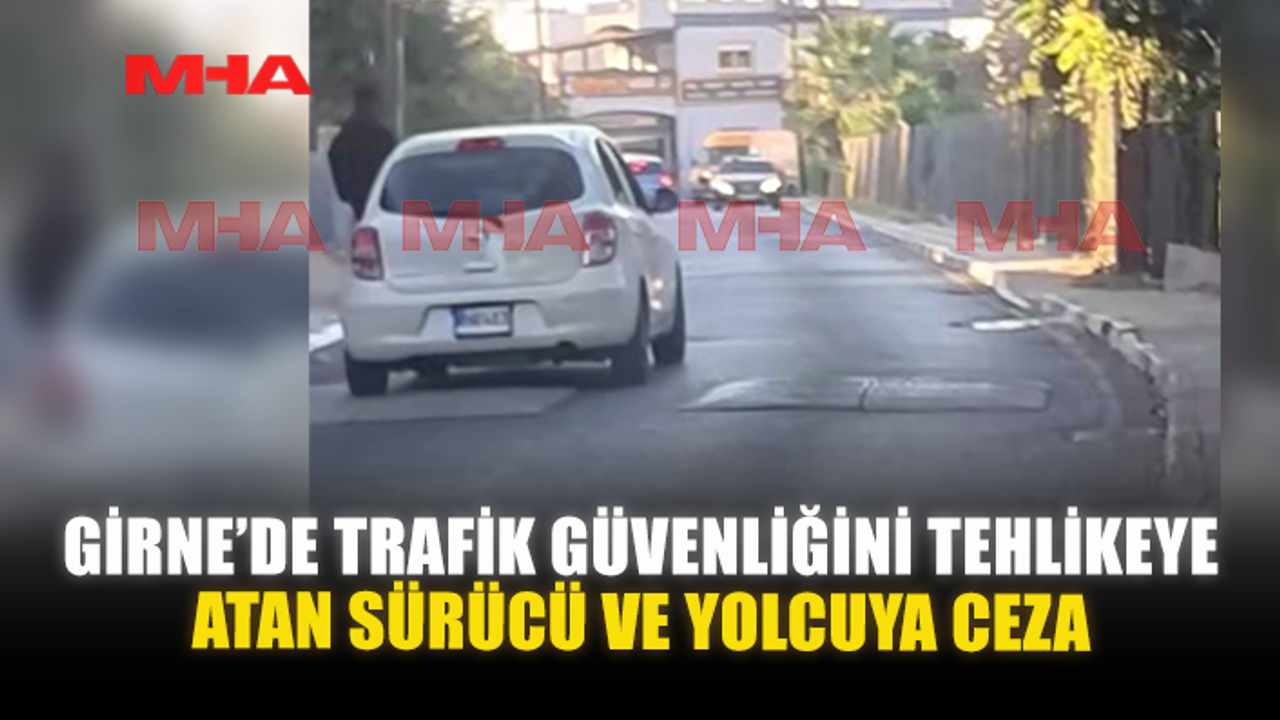 Girne Polis Müdürlüğüne bağlı Trafik Ekipleri tarafından, bahse konu aracın sürücüsü ile yolcu tespit edilerek, işlemiş oldukları trafik suçlarından dolayı her biri 5.120, 20 TL para cezası rapor edilip, aleyhlerinde yasal işlem başlatılmıştır.