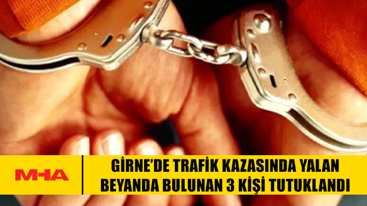 Polis Basın Subaylığı’ndan alınan bilgiye göre 06.10.2025 tarihinde, saat 03:30 sıralarında, Girne-Alsancak Çevre Yolu üzerinde meydana gelen trafik kazası ile ilgili yürütülen ileri soruşturmada, kaza methaldar salon aracı gerçekte E.A.(K-22)’nın kullanmasına rağmen, B.K.(K-21) ile Ü.K.(E-34)’nin aralarında anlaşarak kaza yerine sonradan gelmesini sağladıkları Ü.K.(E-34)’nin konu aracı kullandığı yönünde Polise yalan bilgi verdikleri tespit edilmiştir. Bahse konu şahıslar tutuklanmış olup, soruşturma devam etmektedir.