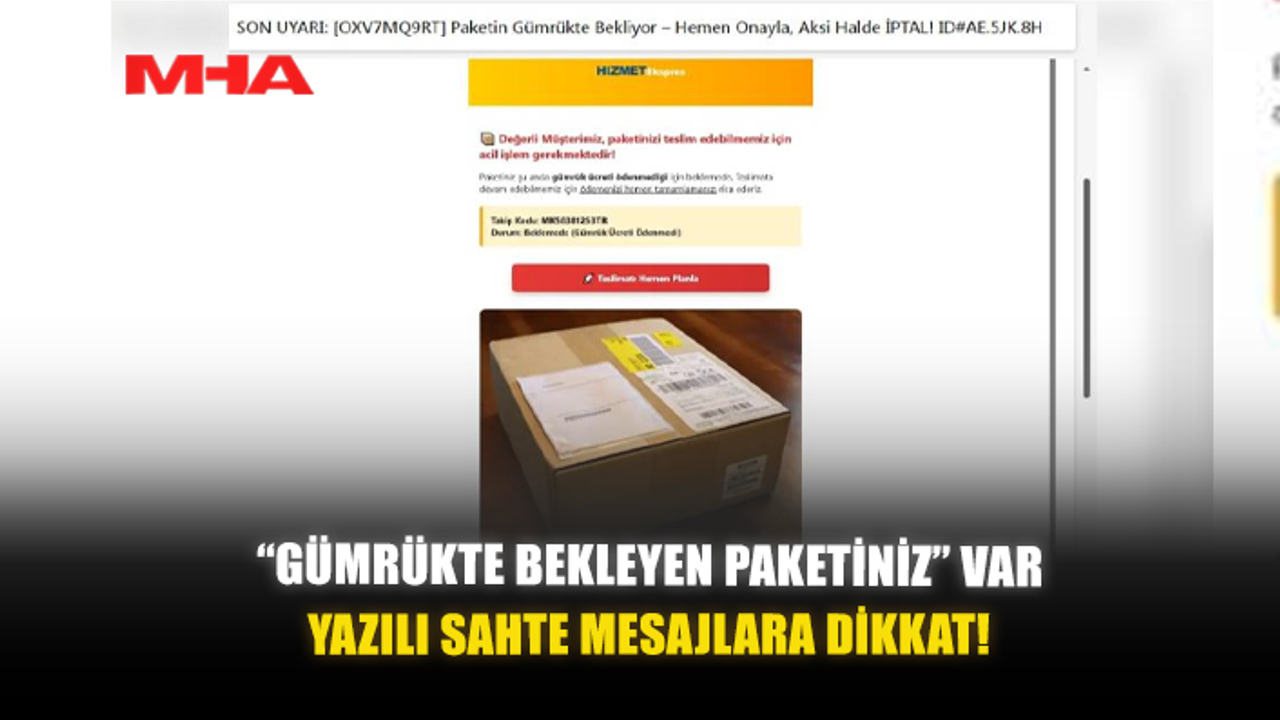 Vatandaşlara gönderilen mailde, “[OXV7MQ9RT] Paketin Gümrükte Bekliyor – Hemen Onayla, Aksi Halde İPTAL!” ifadeleri kullanılırken, kullanıcıların acil işlem yapmaya zorlandığı görüldü.