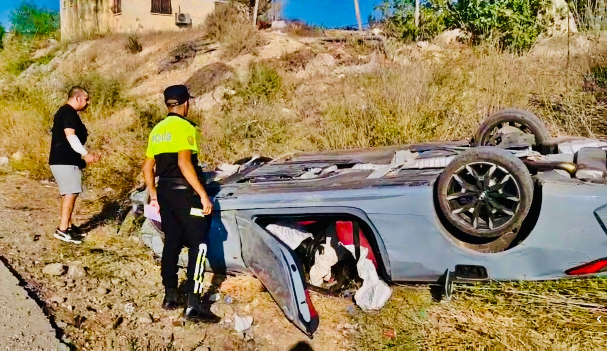 Güzelyurt–Kalkanlı yolunda saat 16.00 sıralarında trafik kazası meydana geldi. Seyir halindeki bir salon araç, kamyonete çarptıktan sonra yol kenarına devrildi.