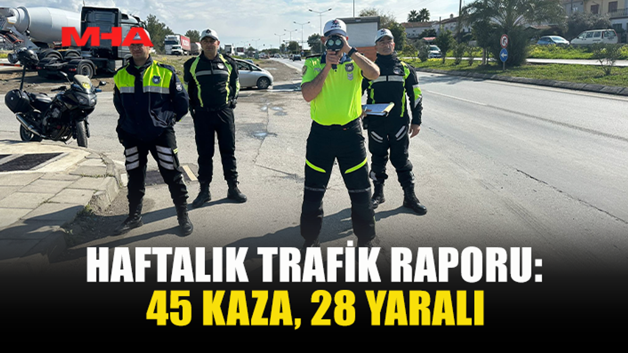 Polis Genel Müdürlüğü'nün 16-22 Şubat tarihlerini kapsayan haftalık trafik raporuna göre, 45 trafik kazası meydana geldi. Bu kazaların 21’i yaralanmayla ve 24'ü ise hasarla sonuçlandı.