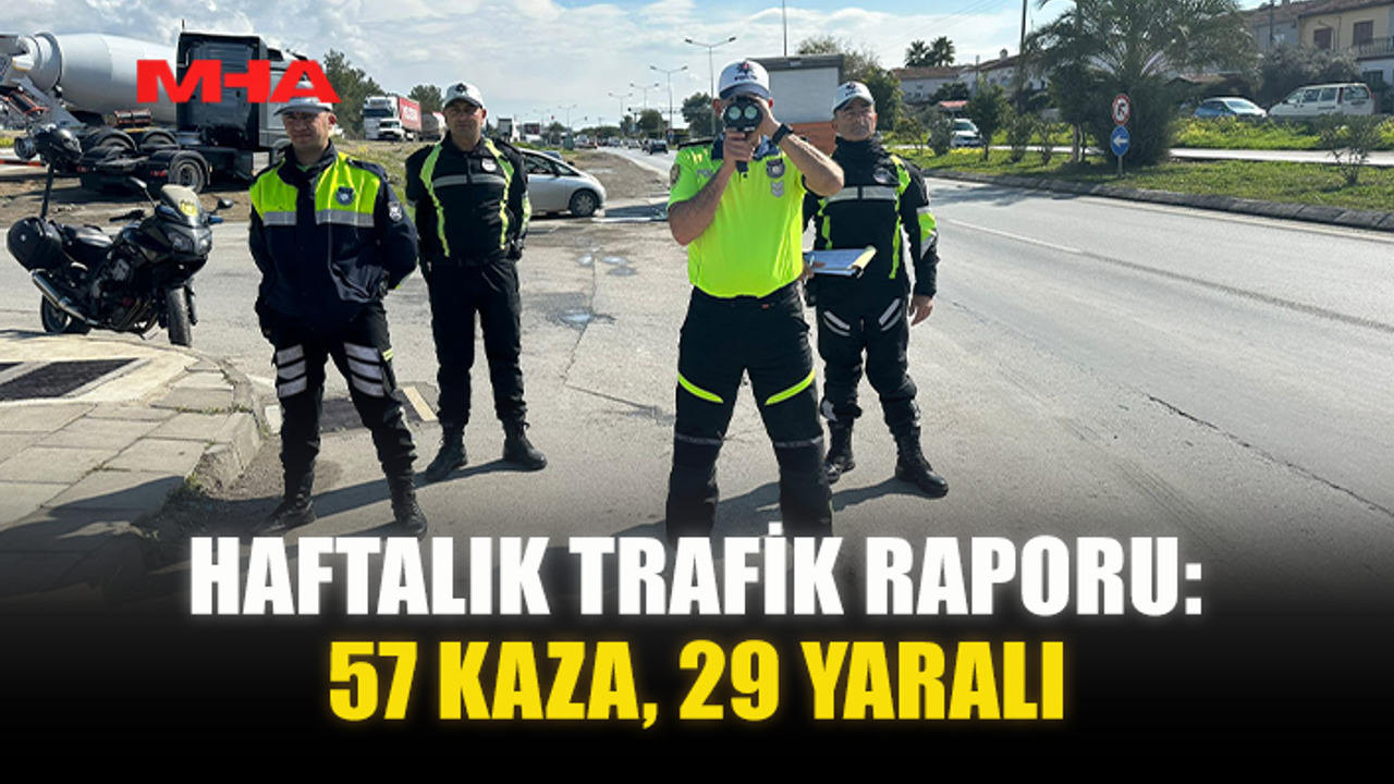 Polis Genel Müdürlüğü’nün 22-28 Aralık tarihlerini kapsayan raporuna göre, belirtilen sürede ülkede 57 trafik kazası meydana gelirken, bu kazaların 20’si yaralanmayla ve 37’si hasarla sonuçlandı. Yaralanma ile neticelenen kazalarda 29 kişi yaralandı.