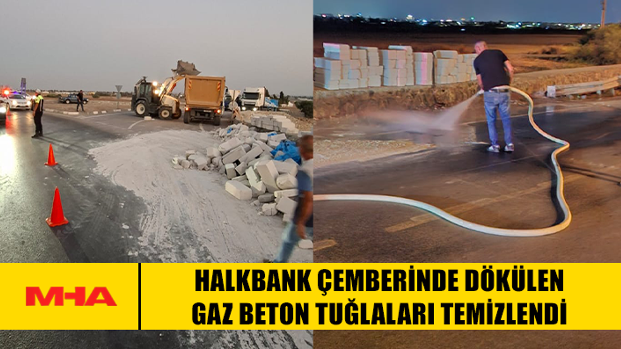 Lefkoşa - Gazimağusa Anayolu üzerinde bulunan Halkbank Çemberinde yol içerisine devrilen gaz beton tuğlalar polis kontrolünde, iş makinesi yardımıyla kaldırılmasının ardından yol basınçlı su ile temizlendikten sonra yolun her iki şeridi yeniden trafiğe açılmıştır. Güvenli sürüşler dileriz.