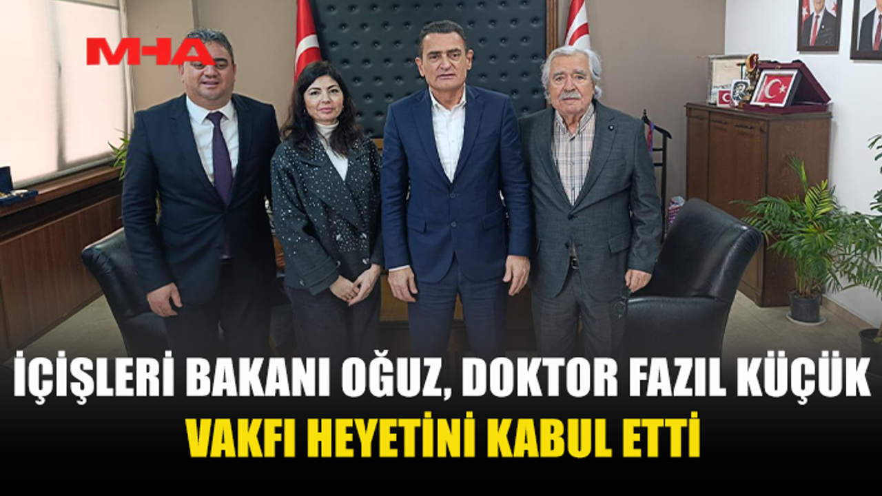 İçişleri Bakanı Dursun Oğuz, bugün Doktor Fazıl Küçük Vakfı Başkanı Mehmet Küçük ve beraberindeki heyeti kabul etti.