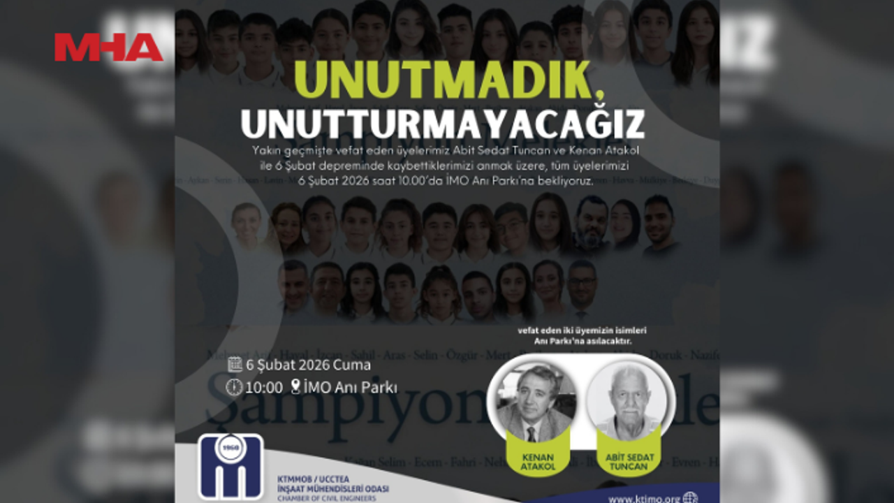 Odadan verilen bilgiye göre, “Unutmadık, Unutturmayacağız” başlığıyla gerçekleştirilecek anma programı, 6 Şubat Cuma saat 10.00’da İMO Anı Parkında yer alacak.