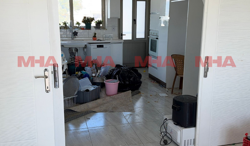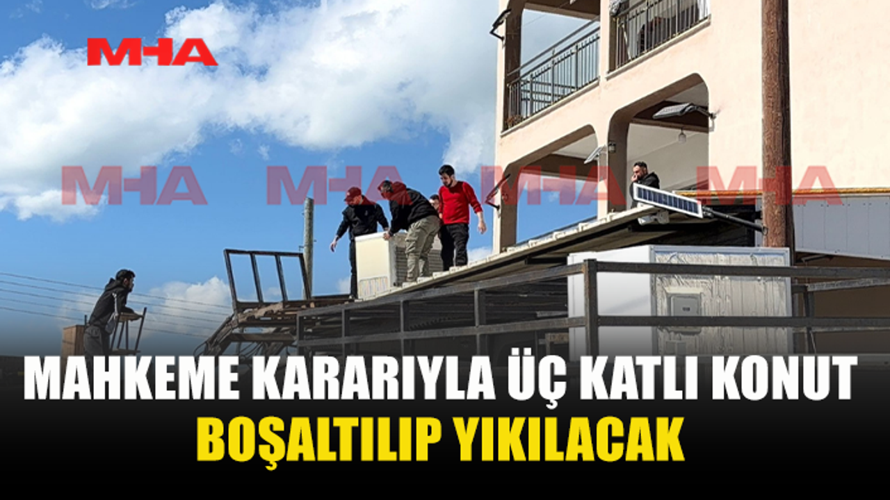 Gazimağusa’ya bağlı Güvercinlika Köyü’nde, Hakkı Yılmaz ve Herdem Yılmaz’a ait üç katlı apartman tipi konut, ikinci mahkeme kararına istinaden yıkım öncesi boşaltılıyor.