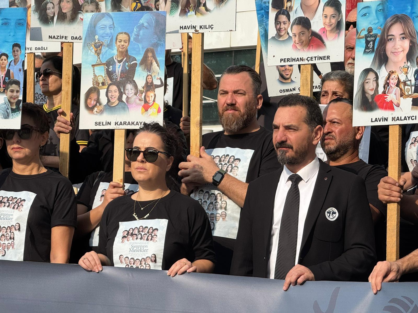 Aileler ellerinde “Kusur toksa sevdiklerimiz nerede”, “Eksik belgelerle ruhsat verenler suçludur”, “Adalet olası kastla gelecek”, “İsias ortak davamız” , “Çıkarlar uğruna yok ettiğiniz hayatların hesabını ödeyeceksiniz”, “Adalet değil katliam”, “Şampiyon Melekler olası kast diyor” ve “Emsaller belli karar net bu dava olası kast” yazılı pankartlar taşıdılar.