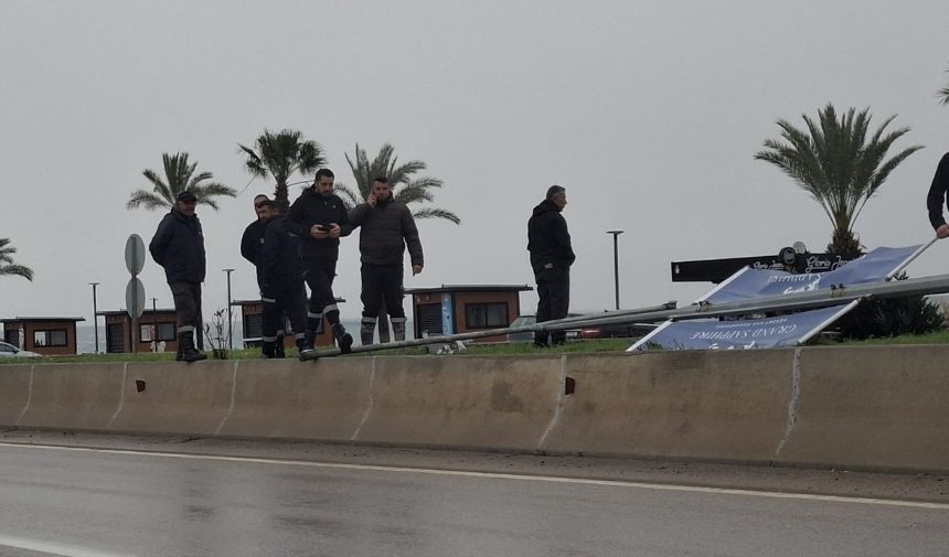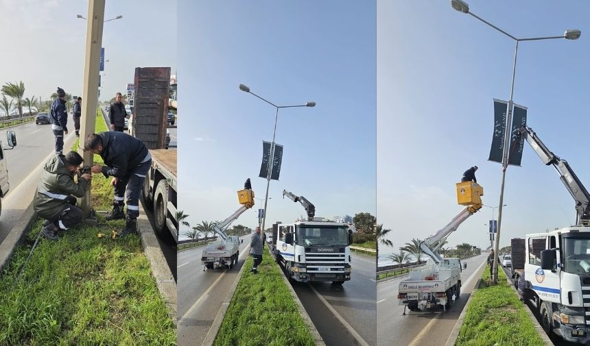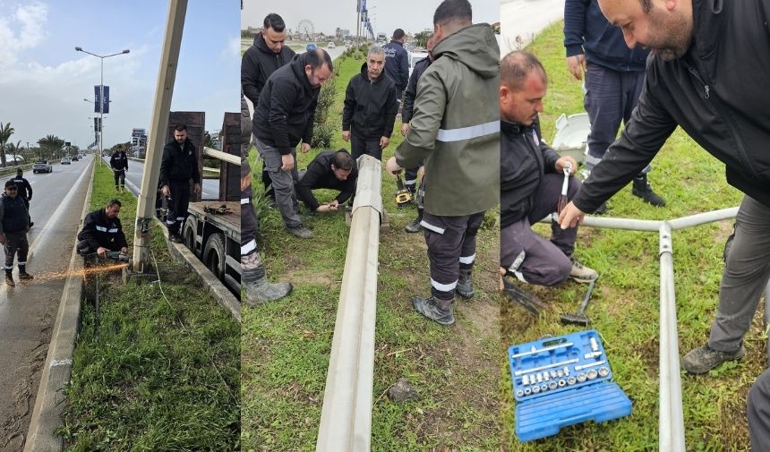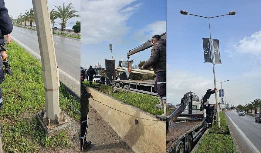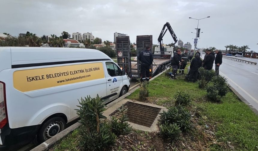 İskele’de etkili olan şiddetli rüzgar nedeniyle düşme tehlikesi bulunan direkler, İskele Belediyesi ekipleri tarafından sökülüyor.