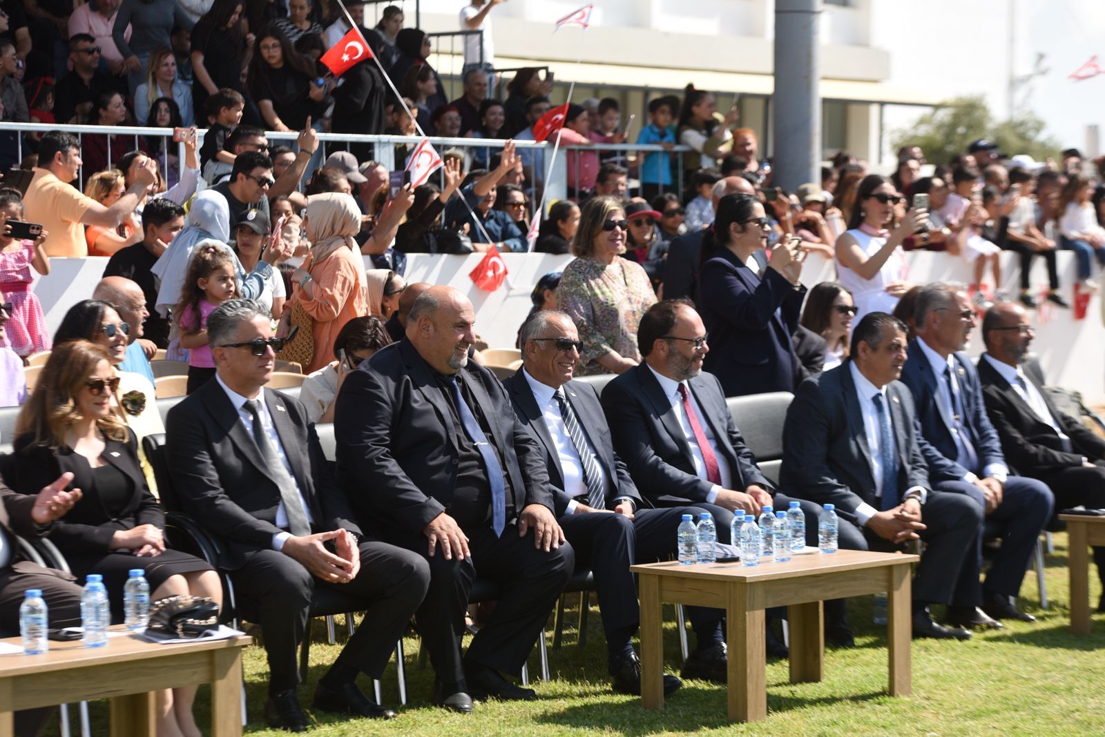 Program, resmi geçit töreniyle başladı. Öğrencilerin bayramının kutlanmasının ardından saygı duruşunda bulunularak, İstiklal Marşı okundu. Törende, Milli Eğitim Bakanı Nazım Çavuşoğlu ve Şehit İlker Karter İlkokulu Müdürü Neriman Vamık konuşma yaptı. Dr. Suat Günsel Devlet İlkokulu öğrencisi Yiğit Dinçer'in Türk Çocuğunun Andını okuduğu törende, Şehit İlker Karter İlkokulu öğrencileri Kumsal Ayşe Tosunoğlu ile Elvin Kont günün anlam ve önemini belirten konuşma yaptı.