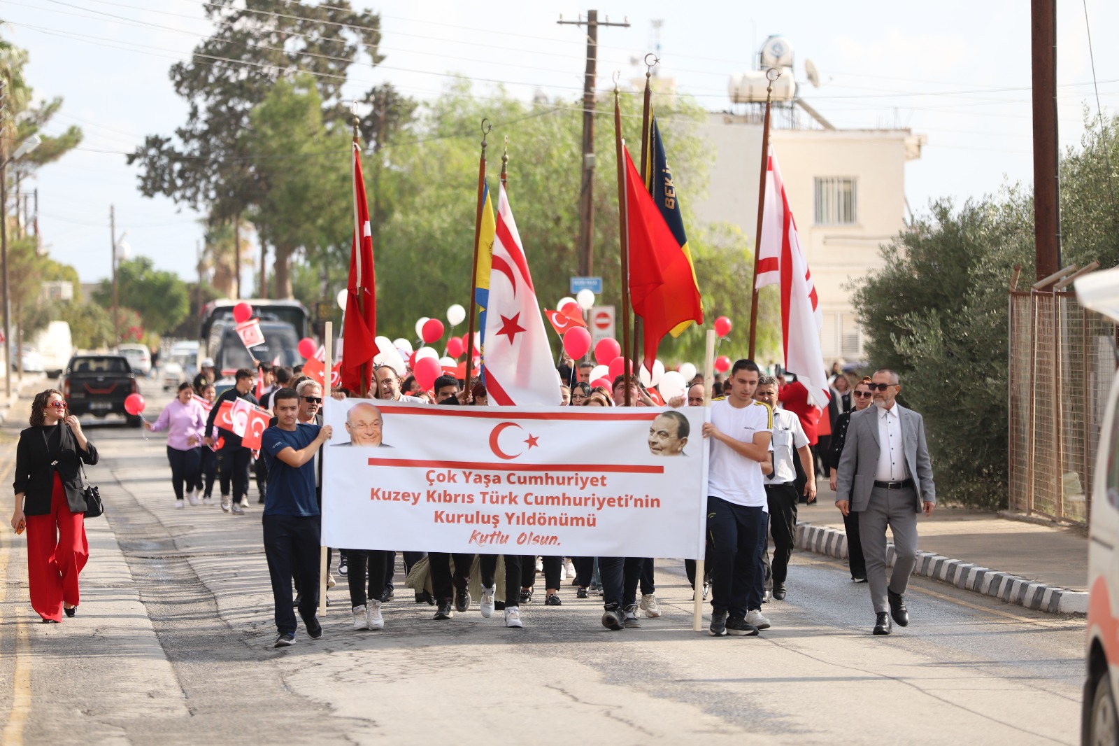 İskele Belediyesi tarafından düzenlenen yürüyüşte, İskele Belediye Başkanı Hasan Sadıkoğlu, İskele Kaymakamlığı, bölge okulları, çeşitli kurum ve kuruluş temsilcileri ile vatandaşlar yer aldı. Bekirpaşa Lisesi önünde başlayan yürüyüş, Ecevit Meydanı’ndaki Atatürk Anıtı’nda son buldu. Katılımcılar anıta ulaştıklarında Ulu Önder Mustafa Kemal Atatürk’ün huzurunda saygı duruşunda bulundu.